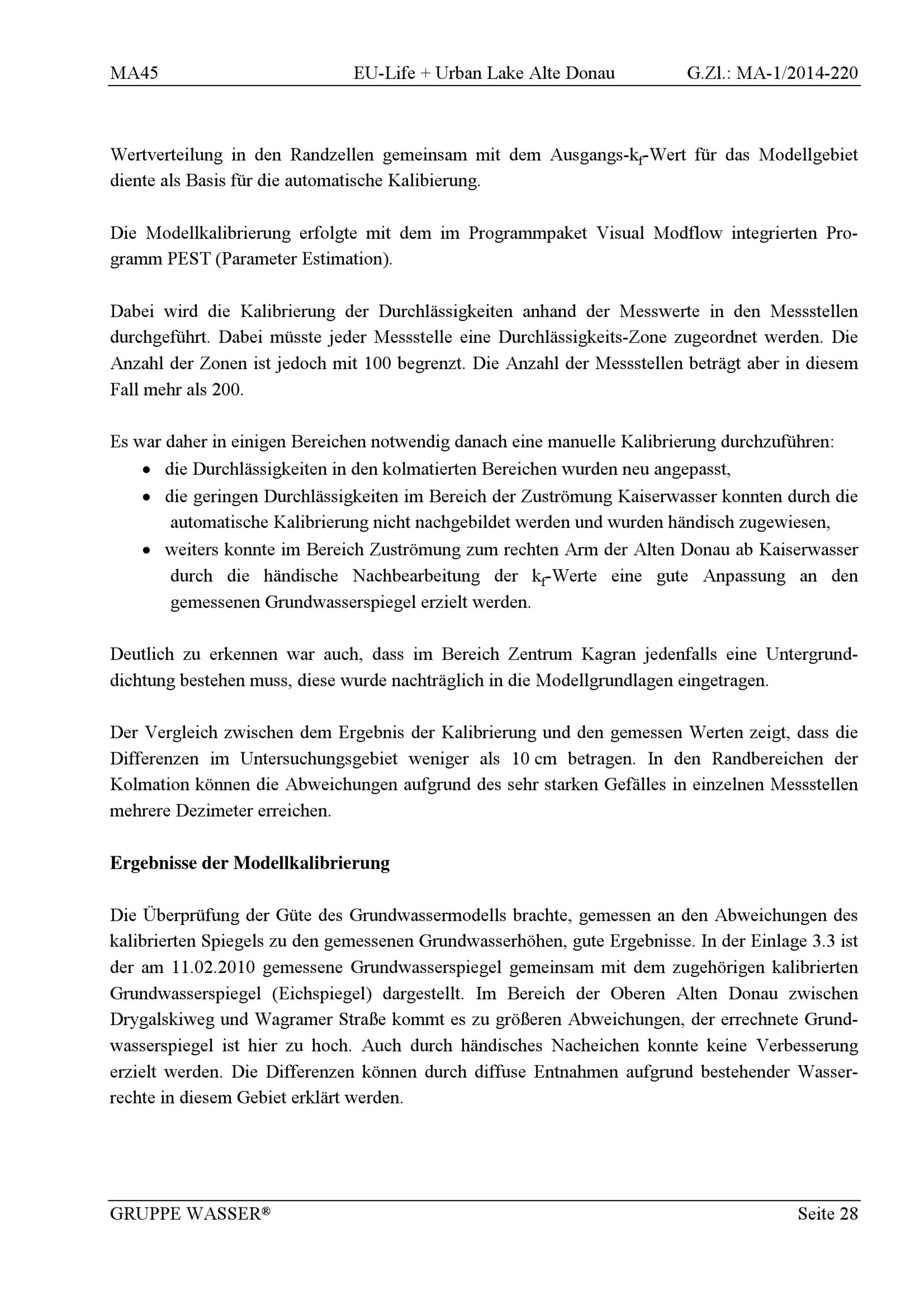 EU-Life + Urban lake : Alte Donau : Aktualisierung der hydrologischen Bilanz : Bericht / betreuender Zivilingenieur: Dipl.-Ing. Raimund Taschke ; Projektleiterin: Dipl.-Ing. Christine Voggenberger ; Auftraggeber: Magistrat der Stadt Wien, Magistratsabteilung 45 - Wiener Gewässer
