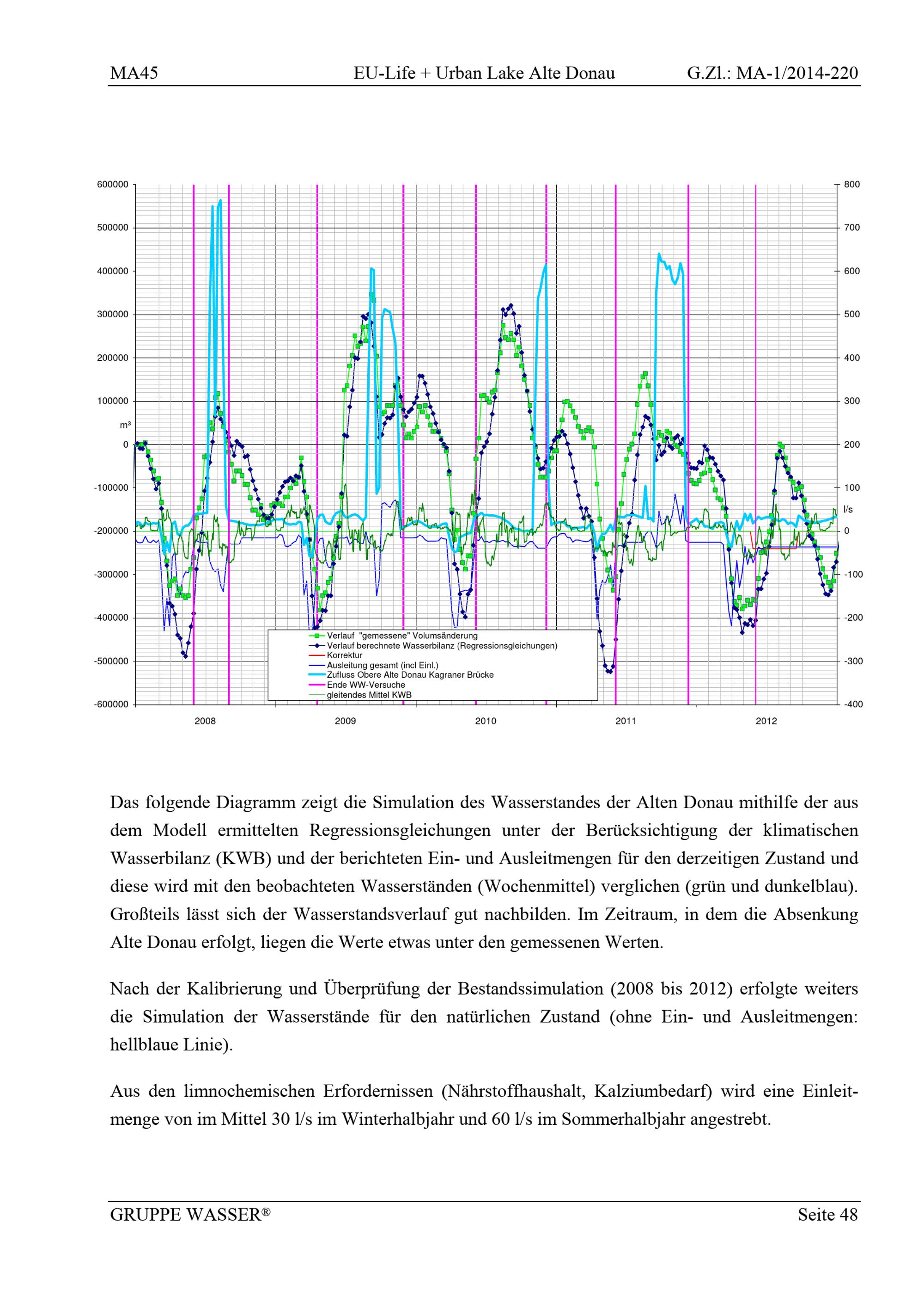 EU-Life + Urban lake : Alte Donau : Aktualisierung der hydrologischen Bilanz : Bericht / betreuender Zivilingenieur: Dipl.-Ing. Raimund Taschke ; Projektleiterin: Dipl.-Ing. Christine Voggenberger ; Auftraggeber: Magistrat der Stadt Wien, Magistratsabteilung 45 - Wiener Gewässer