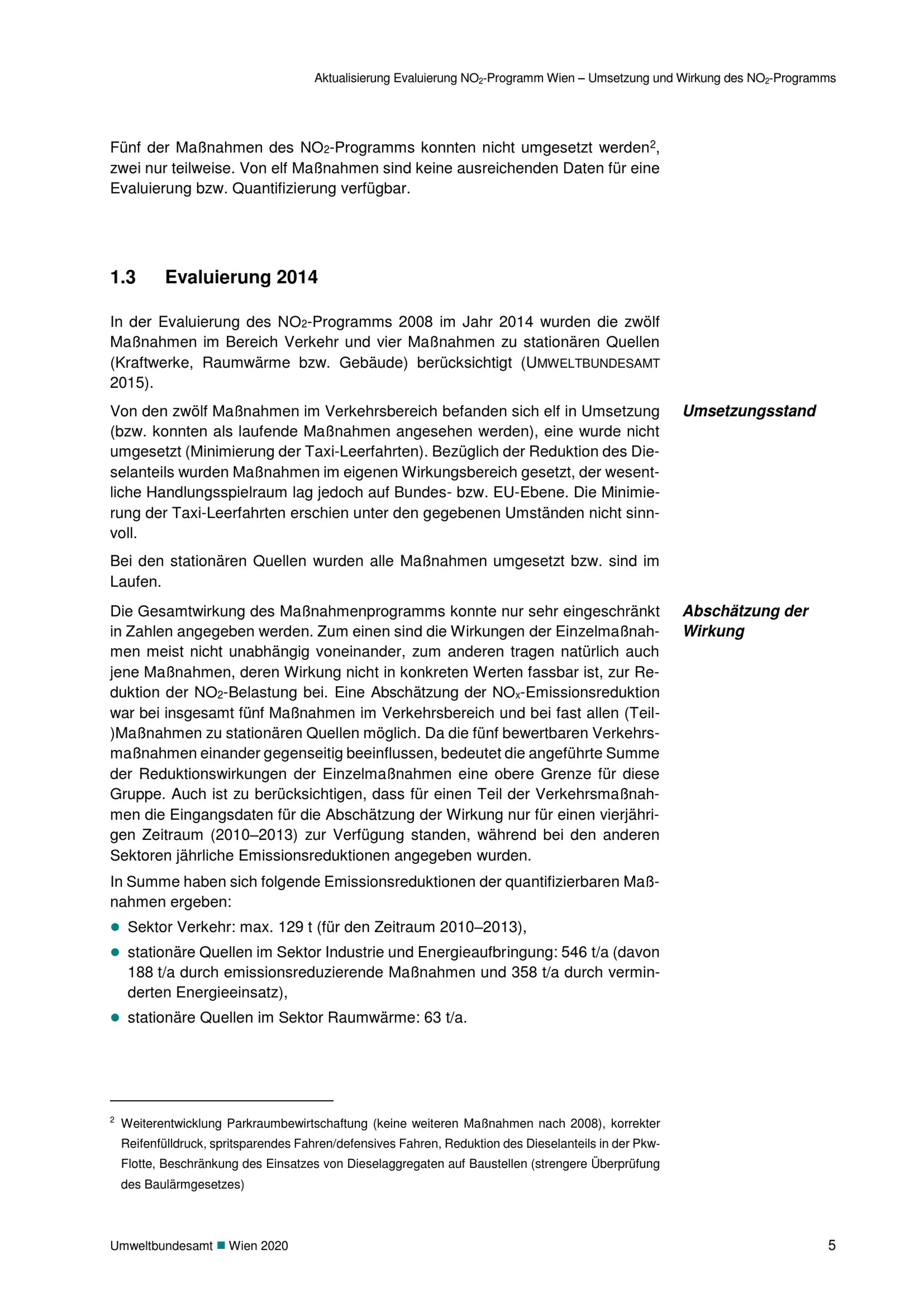 Aktualisierung Evaluierung NO2 - Programm Wien 2020 / Umweltbundesamt ; im Auftrag der MA 22 ; Michael Anderl [und 9 weitere]