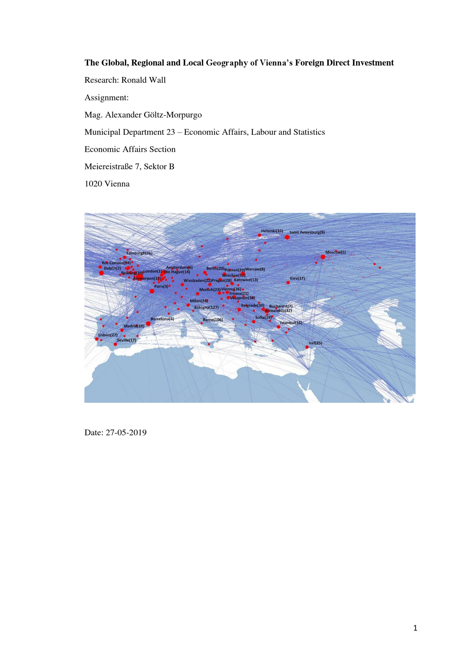 The global, regional and local geography of Vienna’s foreign direct investment / research: Ronald Wall ; assignment: Alexander Göltz-Morpurgo, Municipal Department 23 - Economic Affairs, Labour and Statistics, Economic Affairs Section