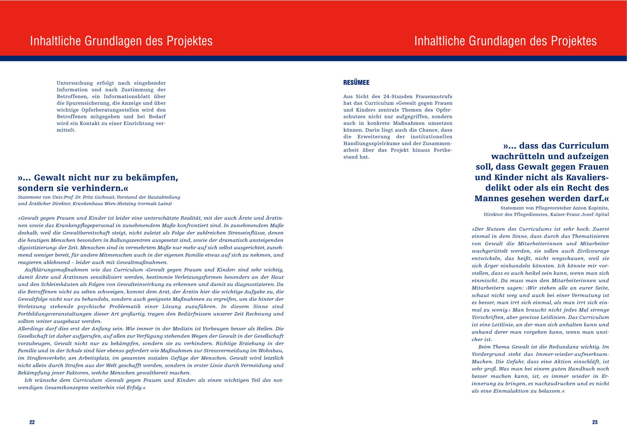 Curriculum Gewalt gegen Frauen und Kinder : Opferschutz an Wiener Krankenanstalten : ein Handbuch / Medieninhaberinnen und Herausgeberinnen: MA 57 - Frauenförderung und Koordinierung von Frauenangelegenheiten, Fonds Soziales Wien, dieSie - Wiener Programm für Frauengesundheit