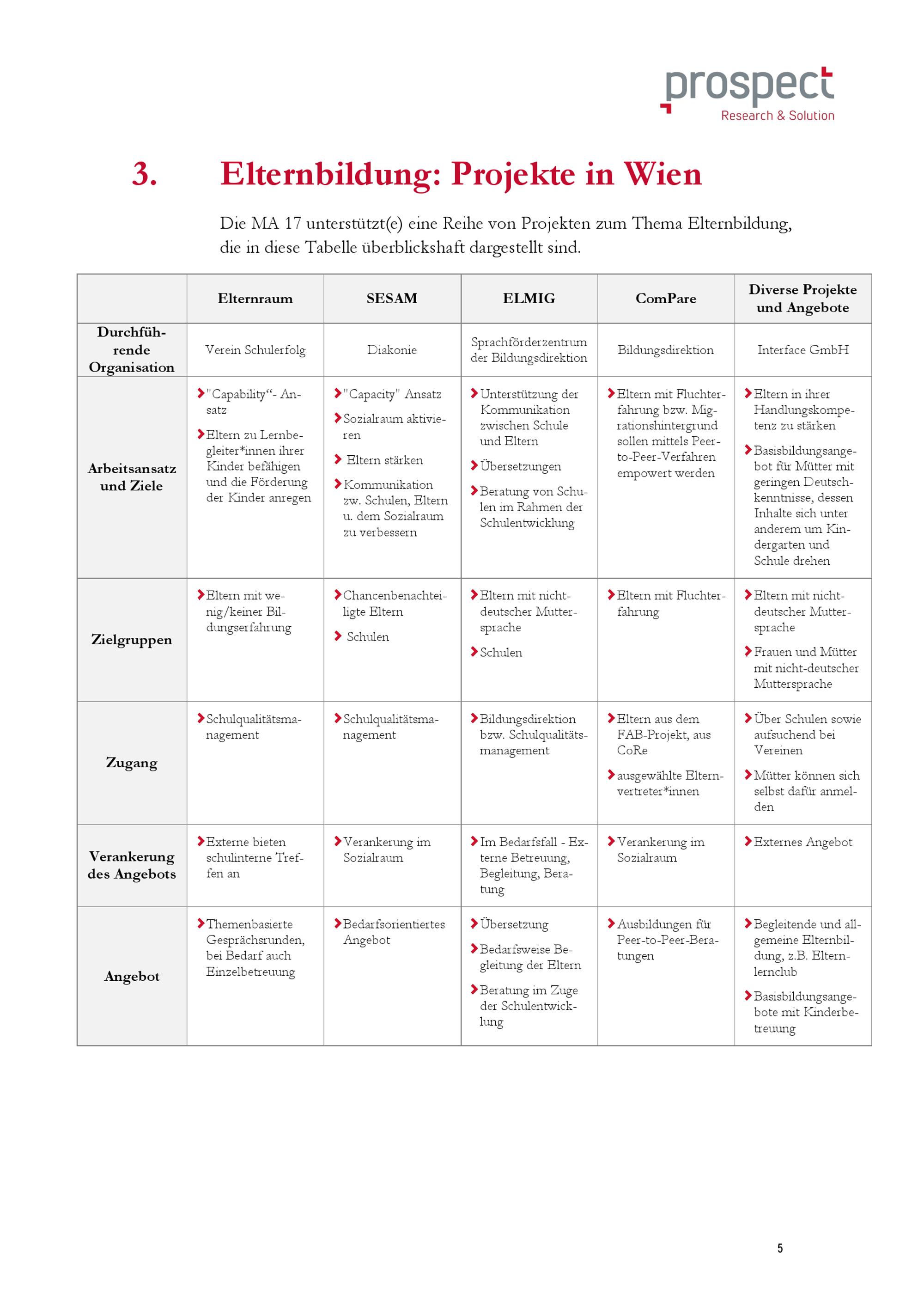 Elternbildung in Wien : Evaluative Studie : Managmant Summary / im Auftrag der MA 17 - Integration und Diversität ; Patricia Schweifer-Ruff, Friederike Weber