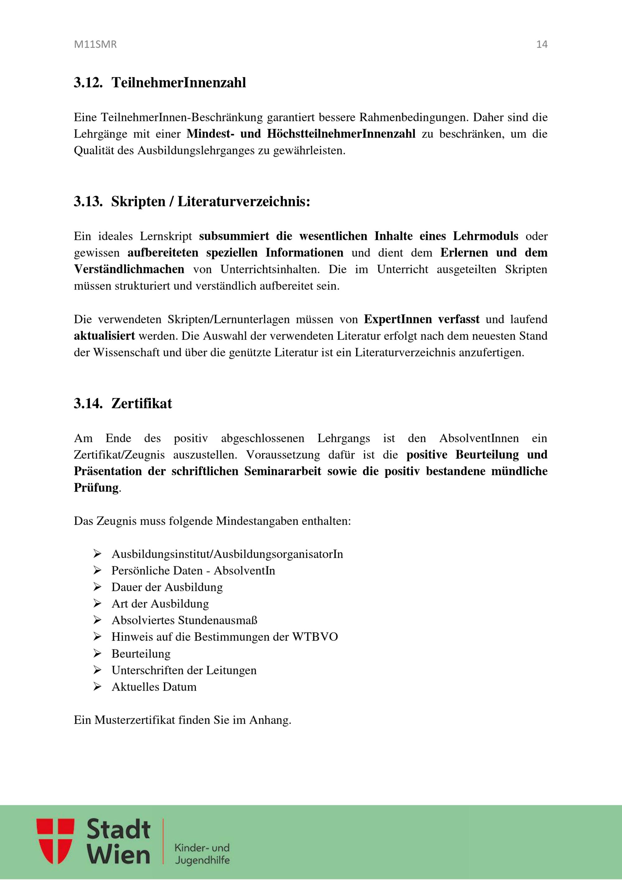 Ausbildungslehrgang für Kindergruppenbetreuungspersonen und Tagesmütter oder Tagesväter : Leitfaden / MA 11 - Amt für Jugend und Familie; Gruppe Recht