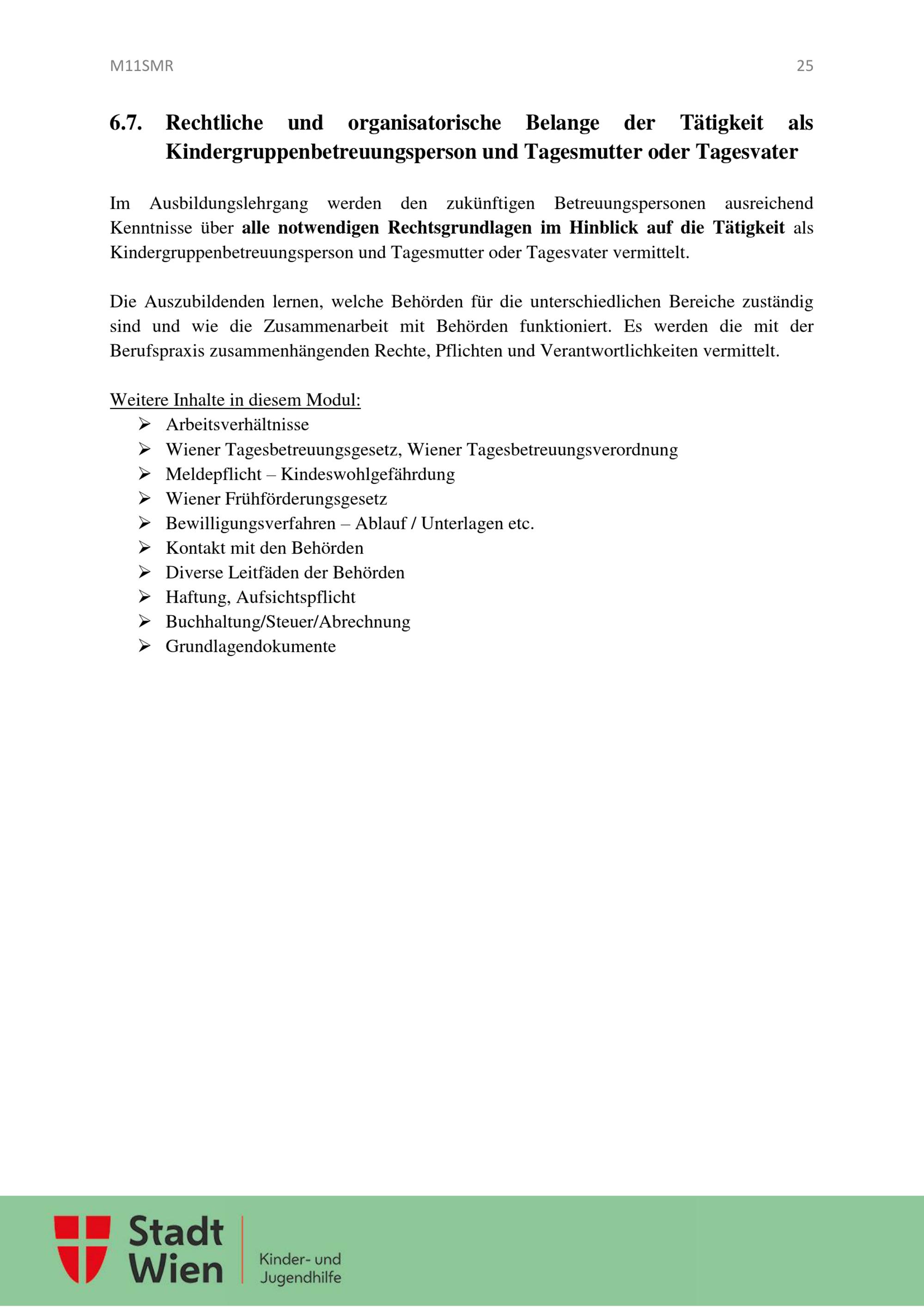 Ausbildungslehrgang für Kindergruppenbetreuungspersonen und Tagesmütter oder Tagesväter : Leitfaden / MA 11 - Amt für Jugend und Familie; Gruppe Recht