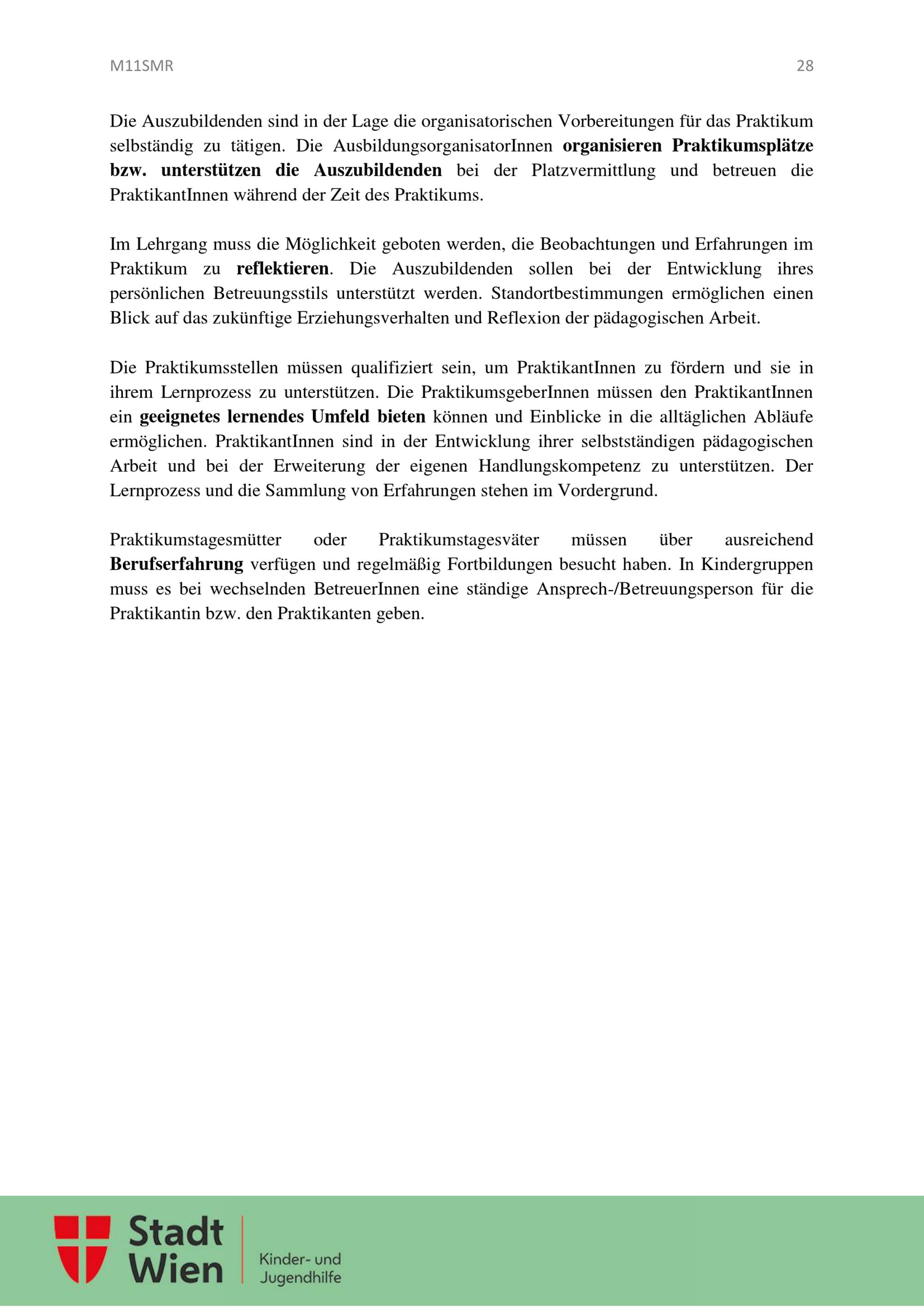 Ausbildungslehrgang für Kindergruppenbetreuungspersonen und Tagesmütter oder Tagesväter : Leitfaden / MA 11 - Amt für Jugend und Familie; Gruppe Recht