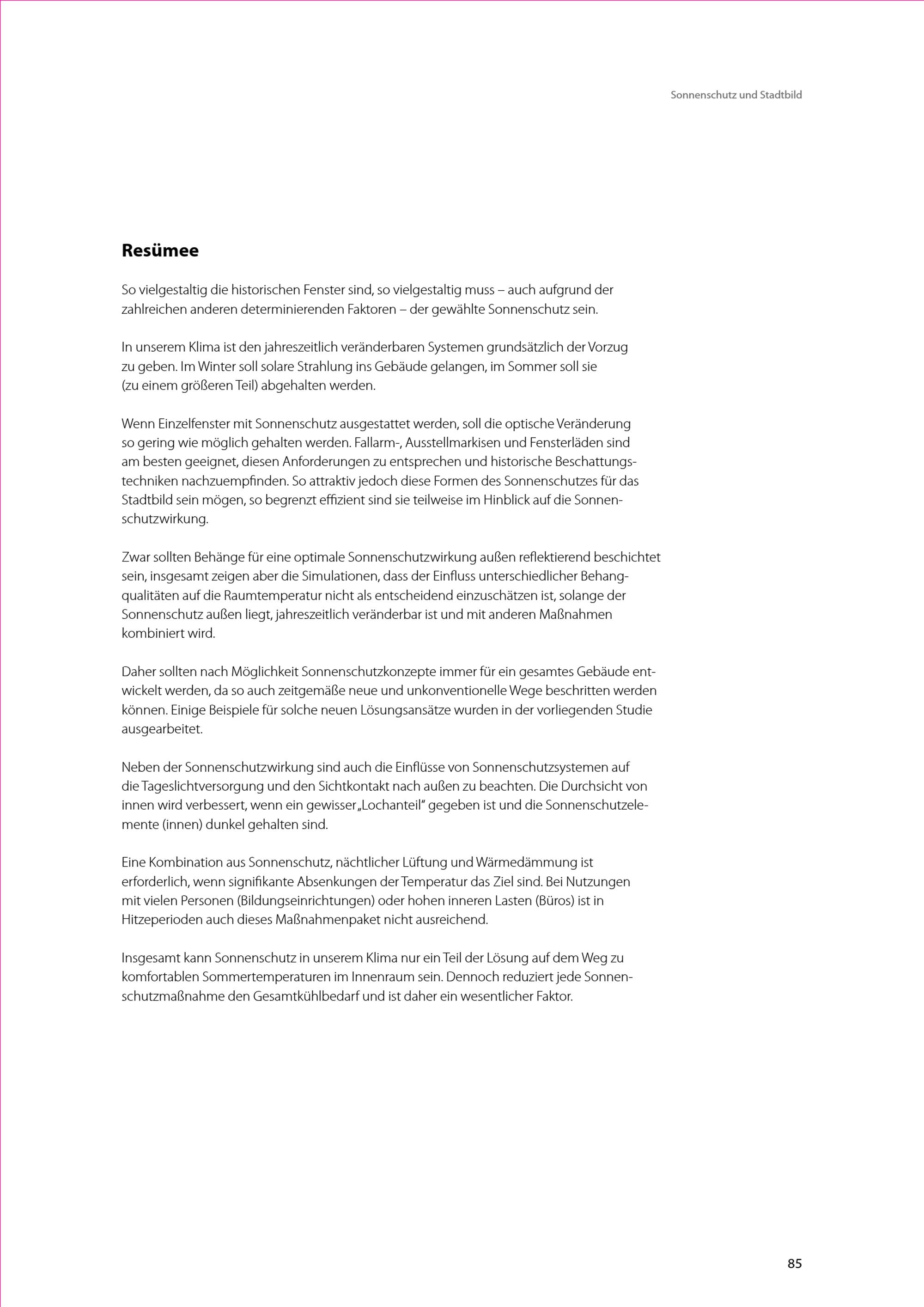 Sonnenschutz und Stadtbild : Sonnenschutzvarianten für historische Bauten : Simulationen zur Innenraumtemperatur / Autorin Ursula Schneider ; Studie im Auftrag der Stadt Wien - Architektur und Stadtgestaltung