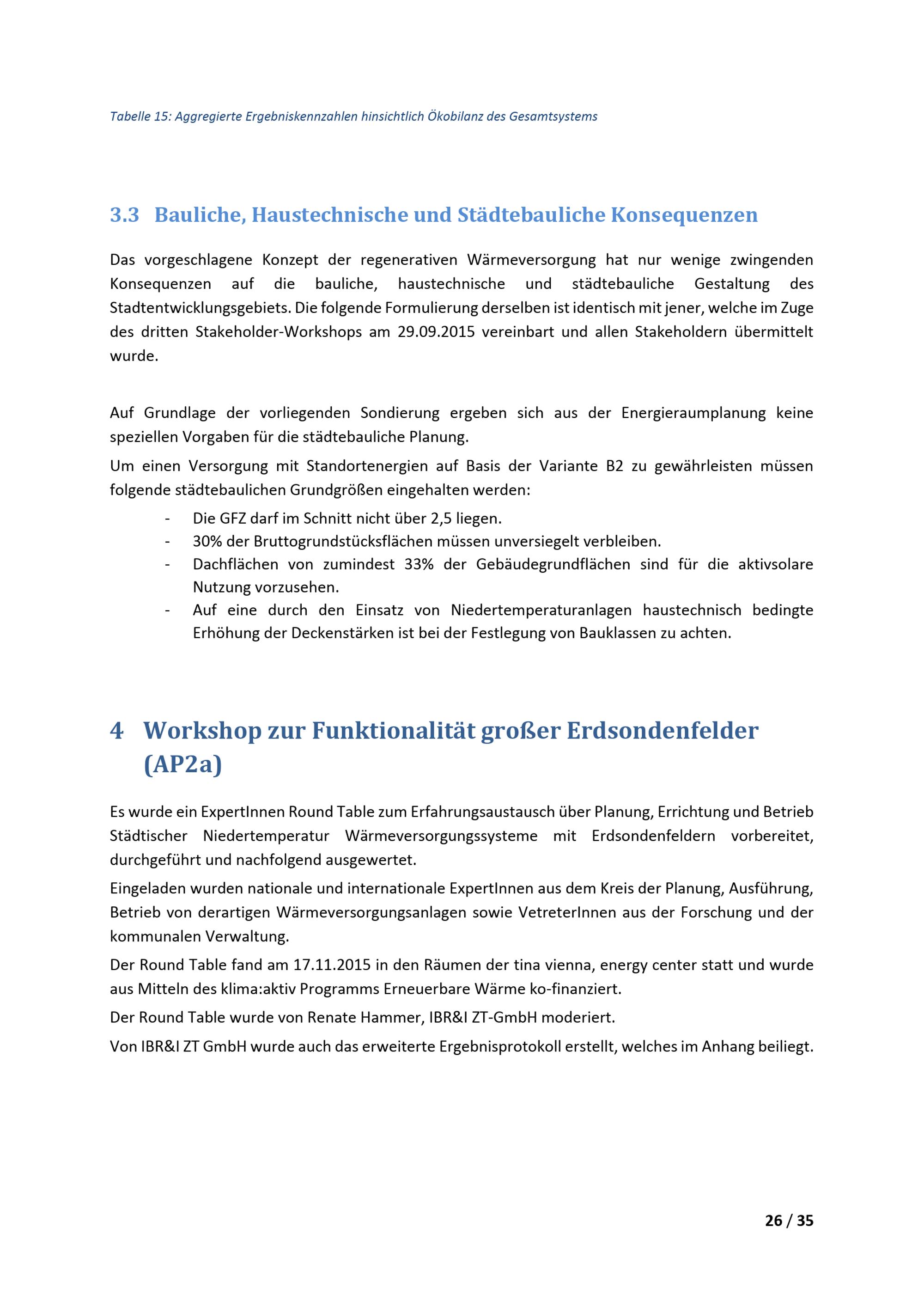 Prozessunterstützung Energieraumplanung Oberes Hausfeld : Bericht : Arbeitszeitraum: 1. August - 15.November 2015 / im Auftrag der MA 20 - Energieplanung ; Institute of Building Research & Innovation ZT-GmbH DI Dr. Peter Holzer Arch., DI Dr. Renate Hammer, MAS