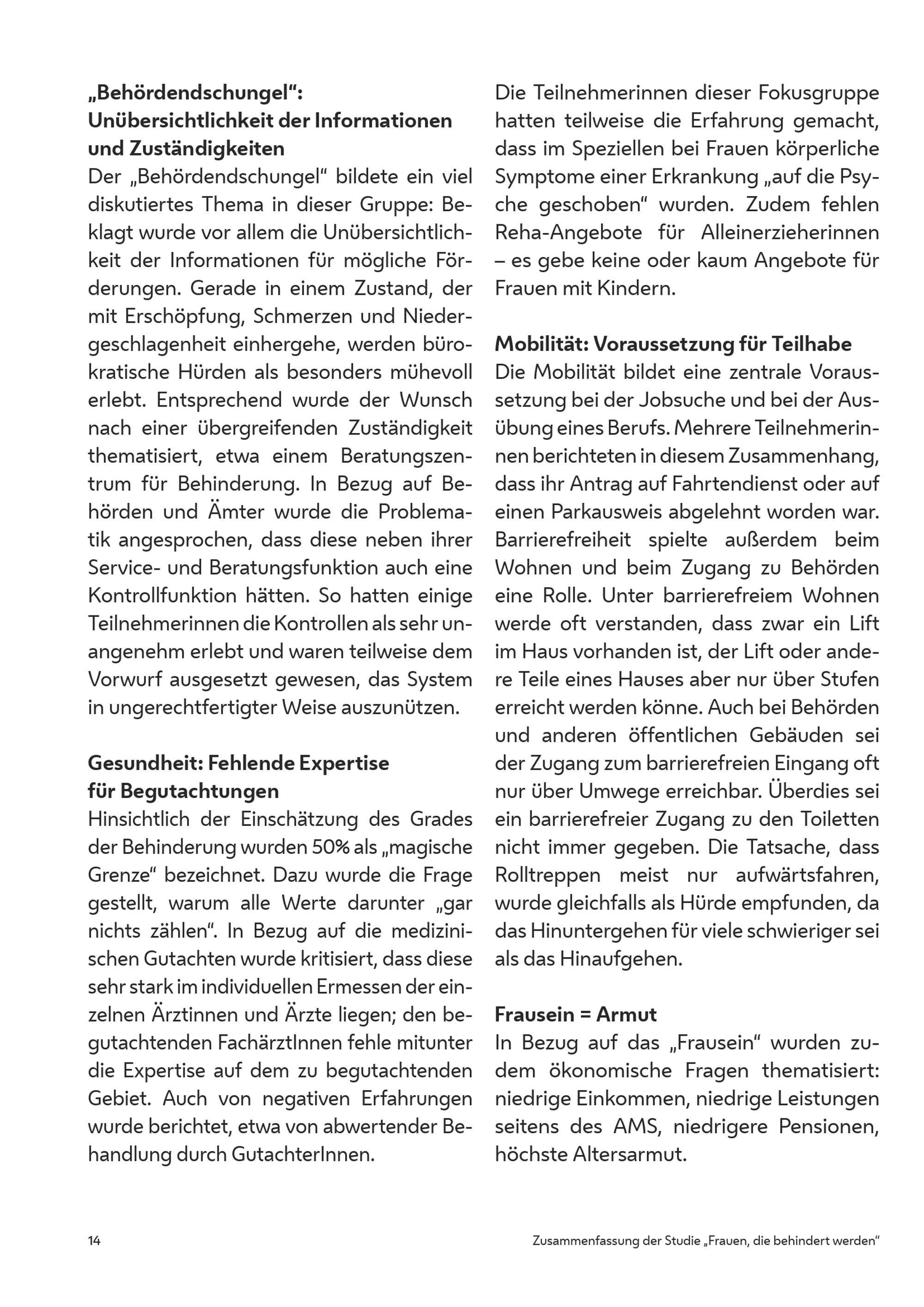Frauen, die behindert werden ... : ... auf ihrem Weg zur Gleichstellung in Wien : Zusammenfassung der qualitativen Studie mit und über Frauen mit Behinderung in Wien (2019) / im Auftrag des Frauenservice Wien (MA 57) : Autorinnen: Claudia Sorger und Nadja Bergmann (L&R Sozialforschung)