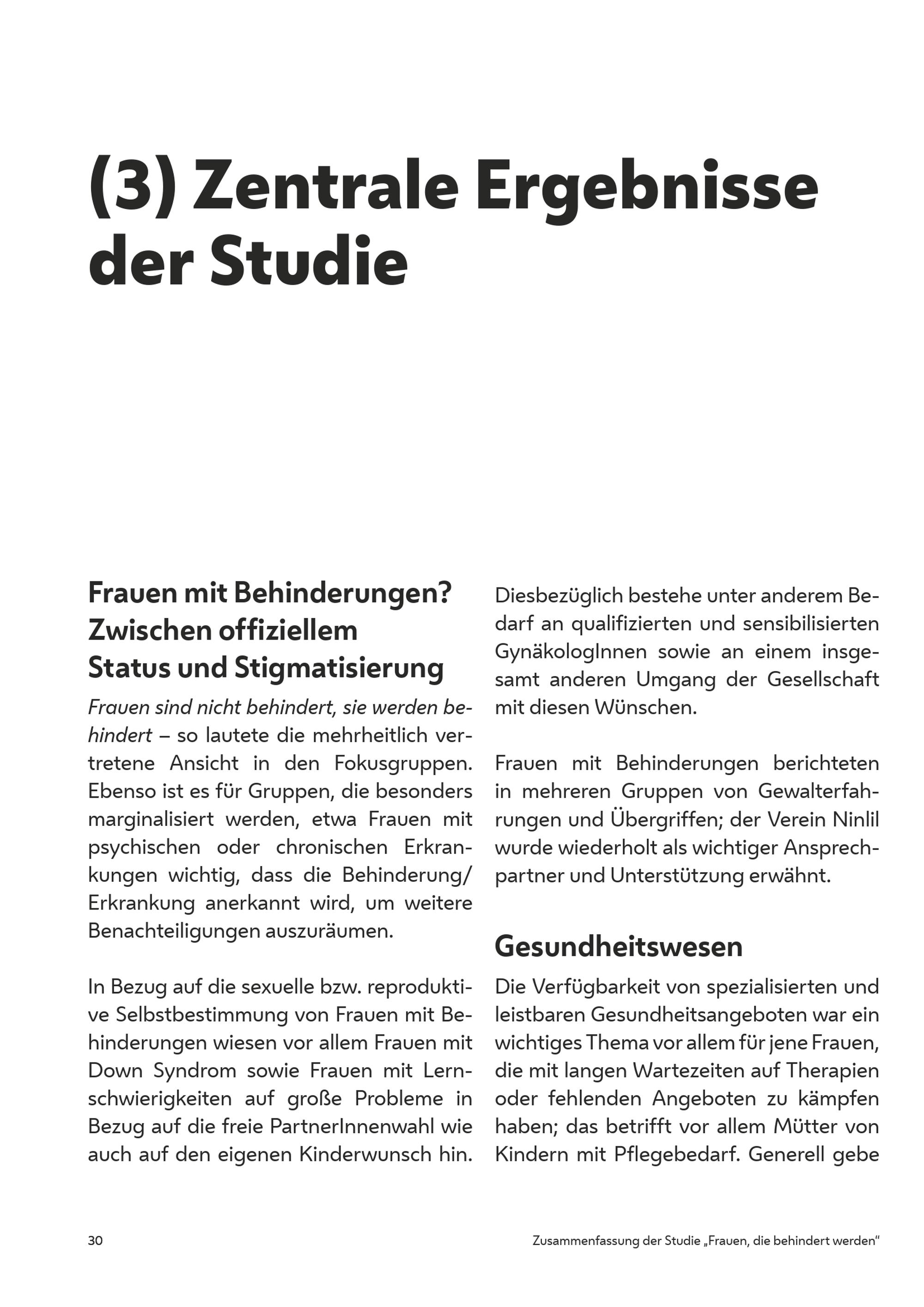 Frauen, die behindert werden ... : ... auf ihrem Weg zur Gleichstellung in Wien : Zusammenfassung der qualitativen Studie mit und über Frauen mit Behinderung in Wien (2019) / im Auftrag des Frauenservice Wien (MA 57) : Autorinnen: Claudia Sorger und Nadja Bergmann (L&R Sozialforschung)