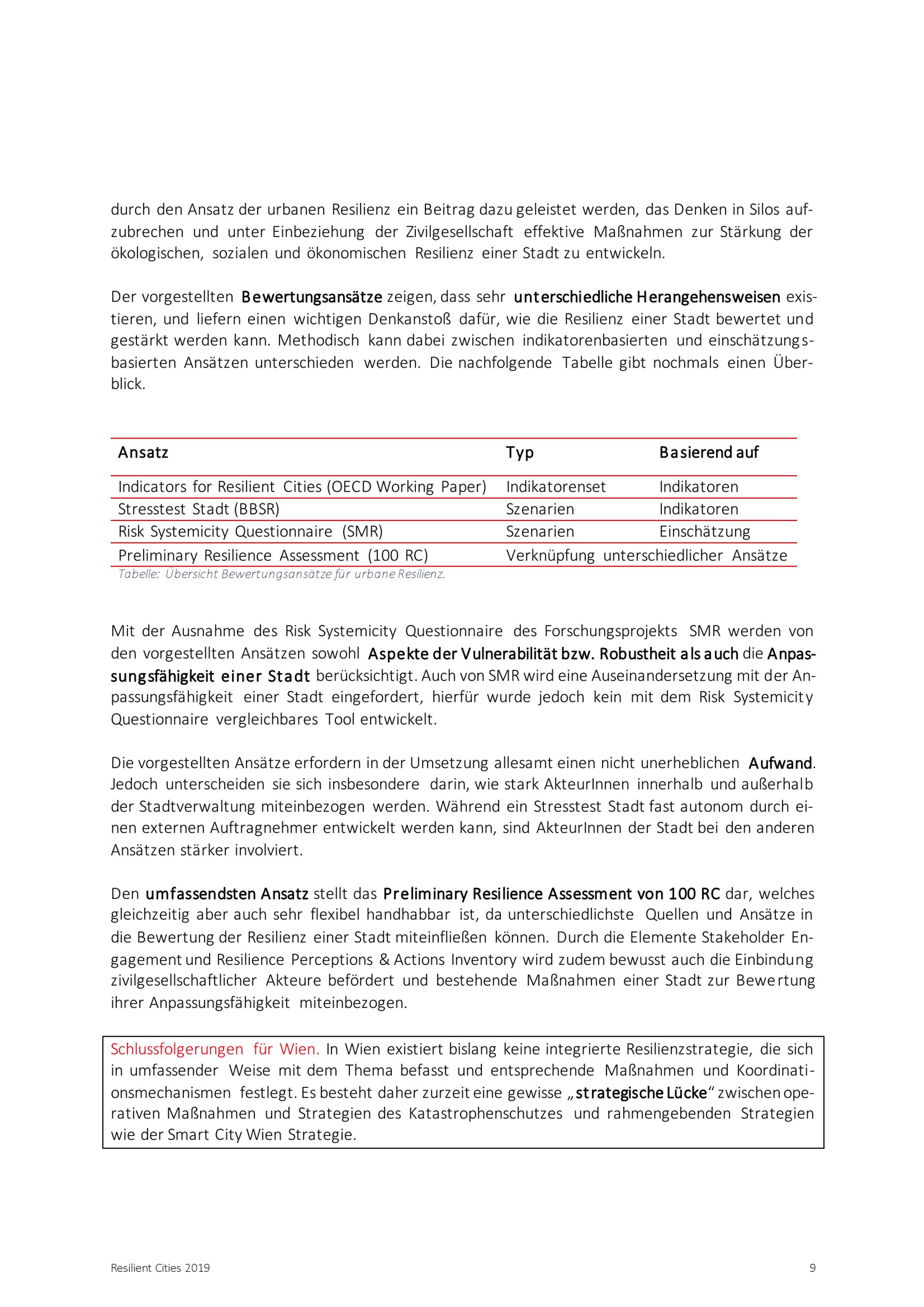 Resilienz und Stadt : Methoden und Bewertungsansätze für die Resilienz städtischer Systeme / Stadt Wien - Stadtentwicklung und Stadtplanung ; urban innovation vienna ; Verfasser: Johannes Hofinger, Johannes Lutter, Petra Schaner, Johannes Suitner