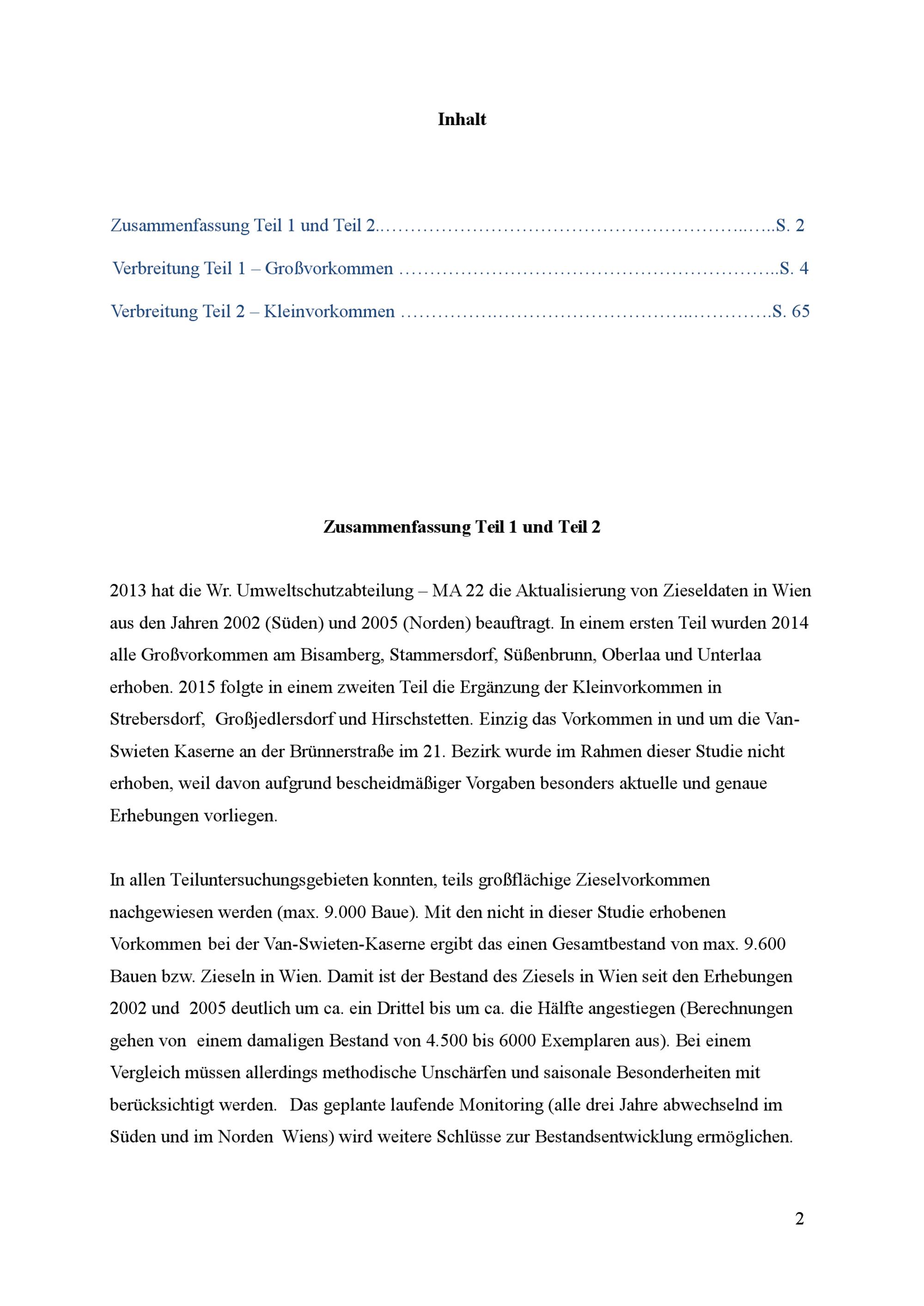 Aktualisierung von Zieseldaten in Wien : (Oktober 2013 bis Oktober 2015) ; Endbericht / MA 22