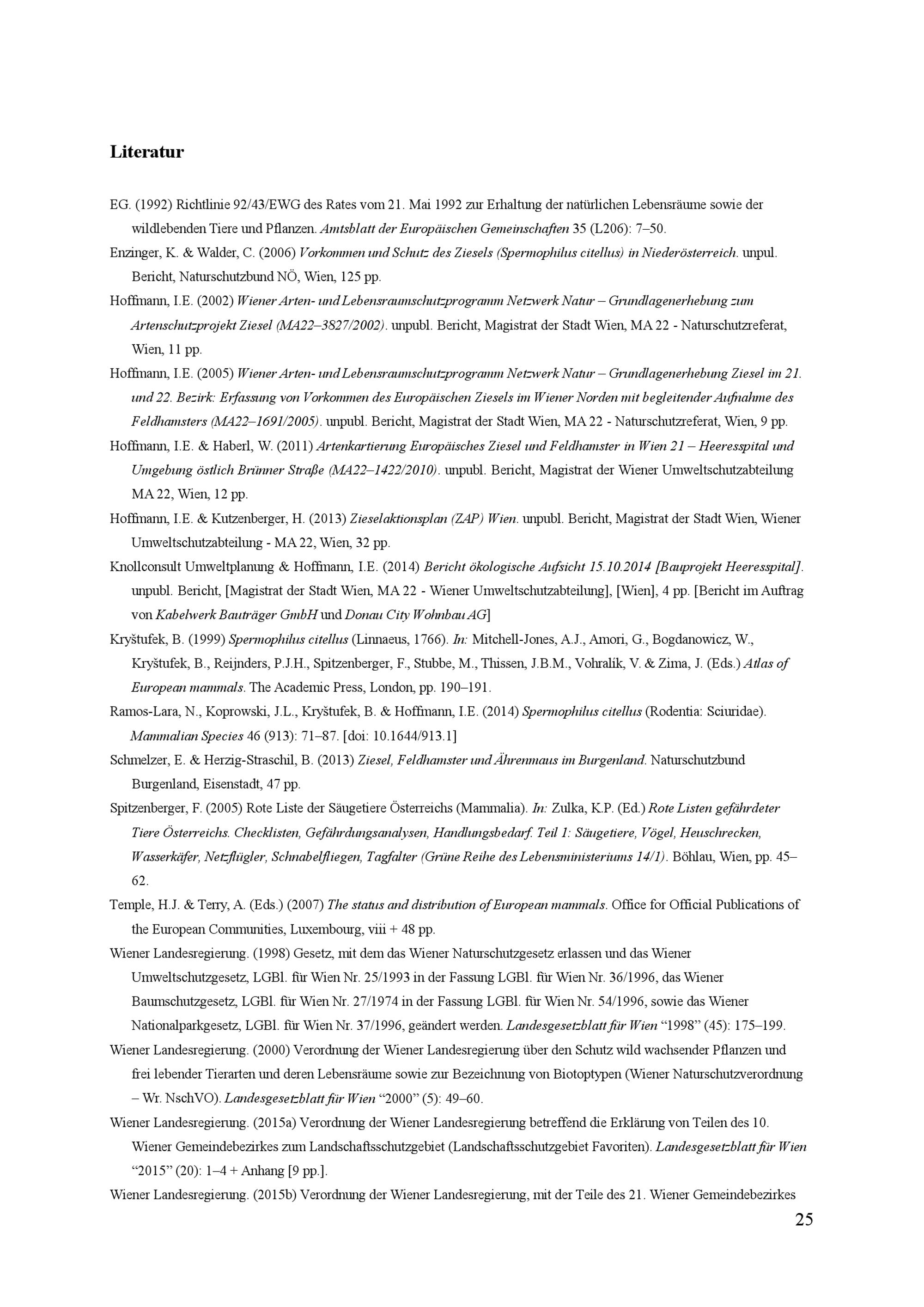 Aktualisierung von Zieseldaten in Wien : (Oktober 2013 bis Oktober 2015) ; Endbericht / MA 22
