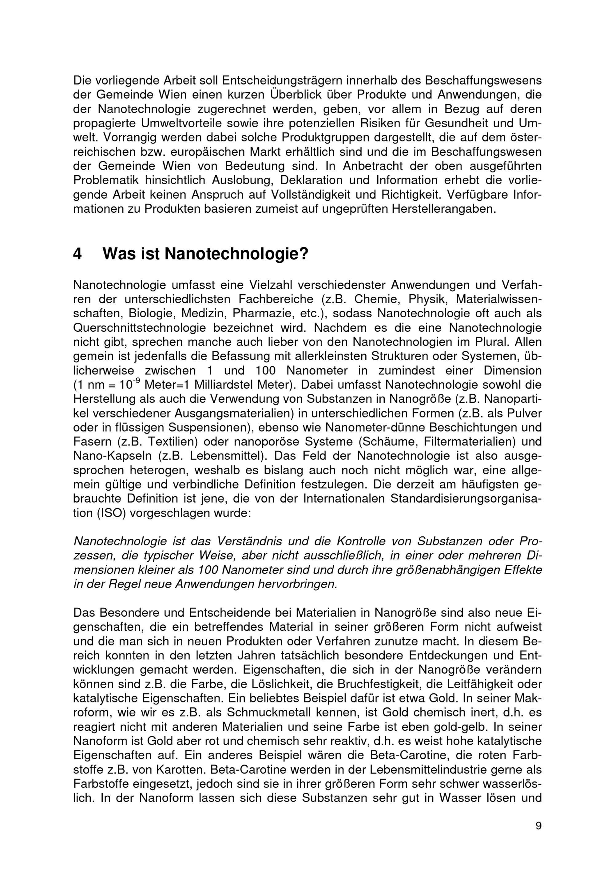 „Nanotechnologie in der Beschaffung Wiens - Erste Abschätzung von Chancen und Risiken“ : Bericht / Mag. Sabine Greßler ; im Auftrag der Stadt Wien Programm für umweltgerechte Leistungen "ÖkoKauf Wien"