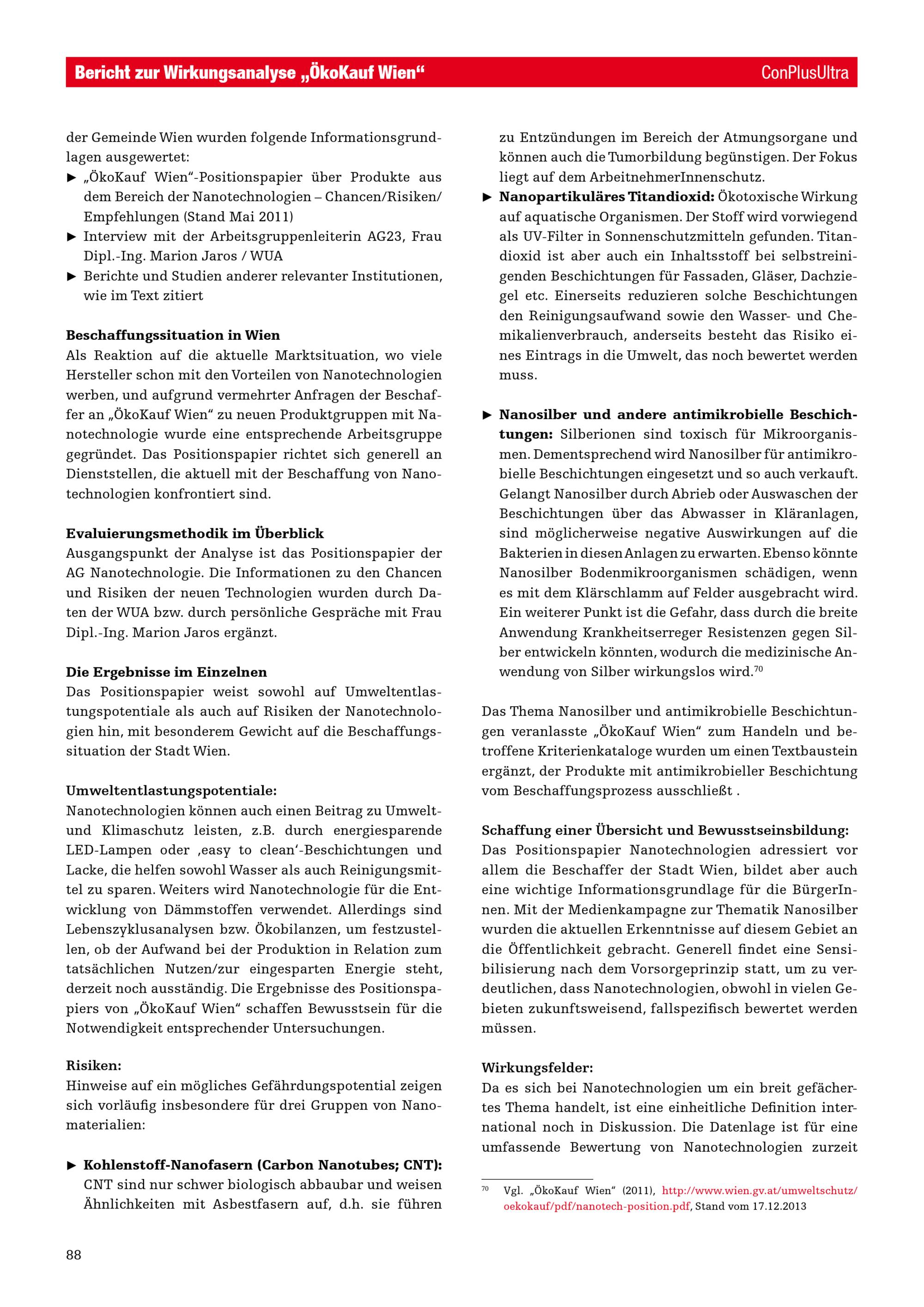 Wirkungsanalyse der ökologischen öffentlichen Beschaffung in der Stadt Wien / Auftraggeber Wiener Umweltschutzabteilung Magistratsabteilung 22 ; Mag. Mag. (FH) Brigitte Hatvan [und 4 weitere]