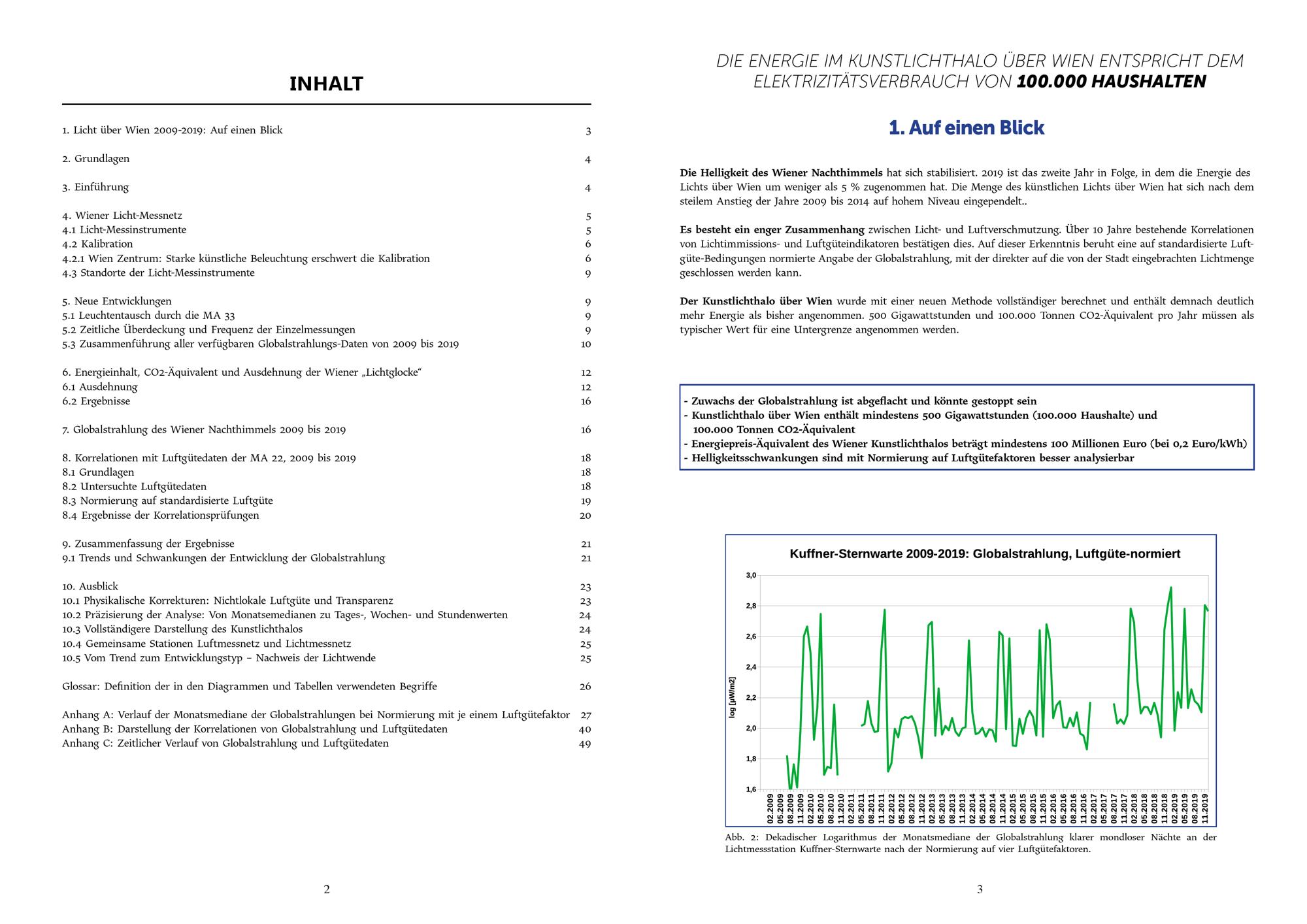Licht über Wien VII : Lichtgehalt der Nacht über Wien von 2009 bis 2019 : Energiegehalt des Kunstlichthalos über Wien : Relationen von nächtlichem Lichtgehalt und Luftgütedaten : Normierung von Lichtmessungen mit Luftgütedaten / Dr. Günther Wuchterl, Markus Reithofer ; Studie im Auftrag der Wiener Umweltschutzabteilung – MA 22