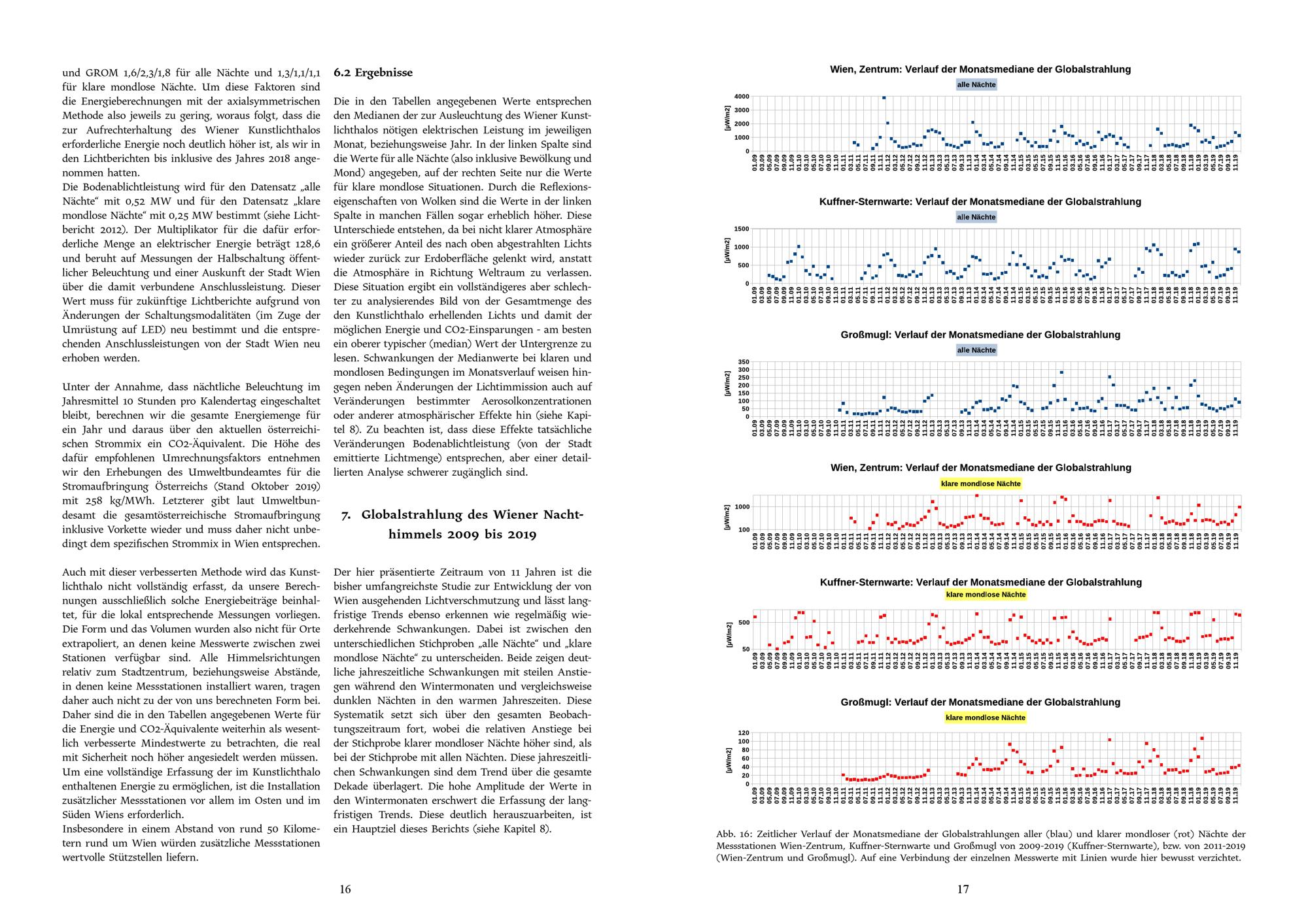 Licht über Wien VII : Lichtgehalt der Nacht über Wien von 2009 bis 2019 : Energiegehalt des Kunstlichthalos über Wien : Relationen von nächtlichem Lichtgehalt und Luftgütedaten : Normierung von Lichtmessungen mit Luftgütedaten / Dr. Günther Wuchterl, Markus Reithofer ; Studie im Auftrag der Wiener Umweltschutzabteilung – MA 22