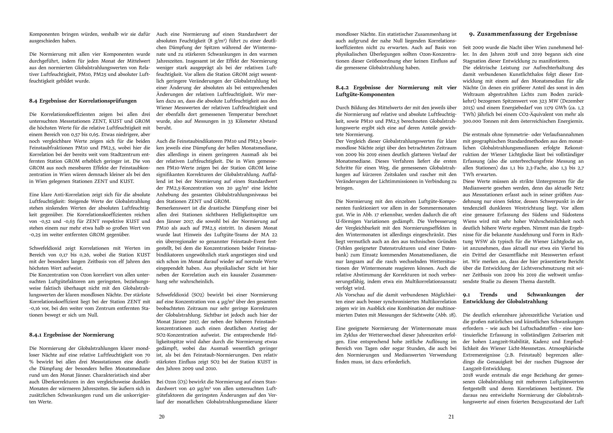 Licht über Wien VII : Lichtgehalt der Nacht über Wien von 2009 bis 2019 : Energiegehalt des Kunstlichthalos über Wien : Relationen von nächtlichem Lichtgehalt und Luftgütedaten : Normierung von Lichtmessungen mit Luftgütedaten / Dr. Günther Wuchterl, Markus Reithofer ; Studie im Auftrag der Wiener Umweltschutzabteilung – MA 22