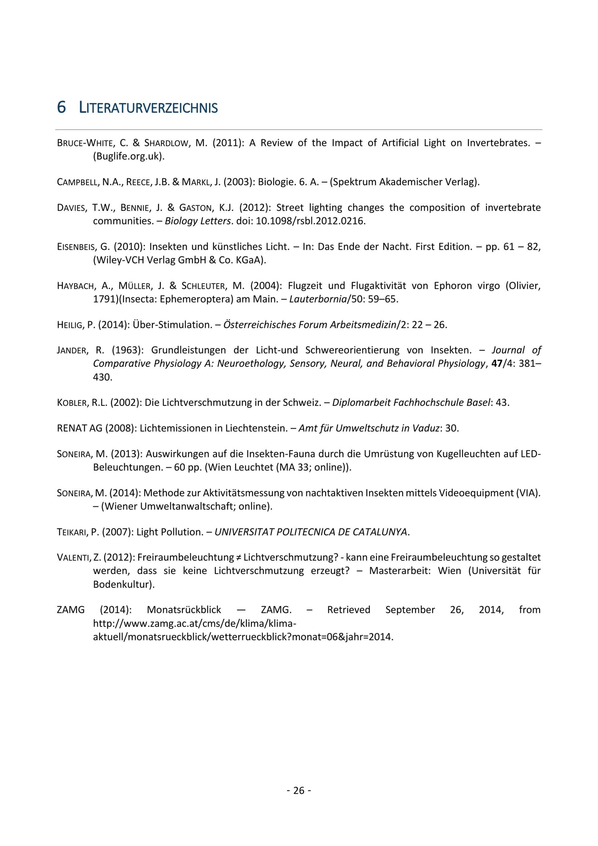 Bericht zu den Auswirkungen von Blendschute und Halbnachtschaltung auf nachtaktive Insekten, sowie deren Flugzeitrhythmen und Aufenthaltszeiten an LED- und Langfeldleuchten : eine Auftragsstudie von Wien Leuchtet (MA 33 der Stadt Wien) / Verfasser Martin Soneira