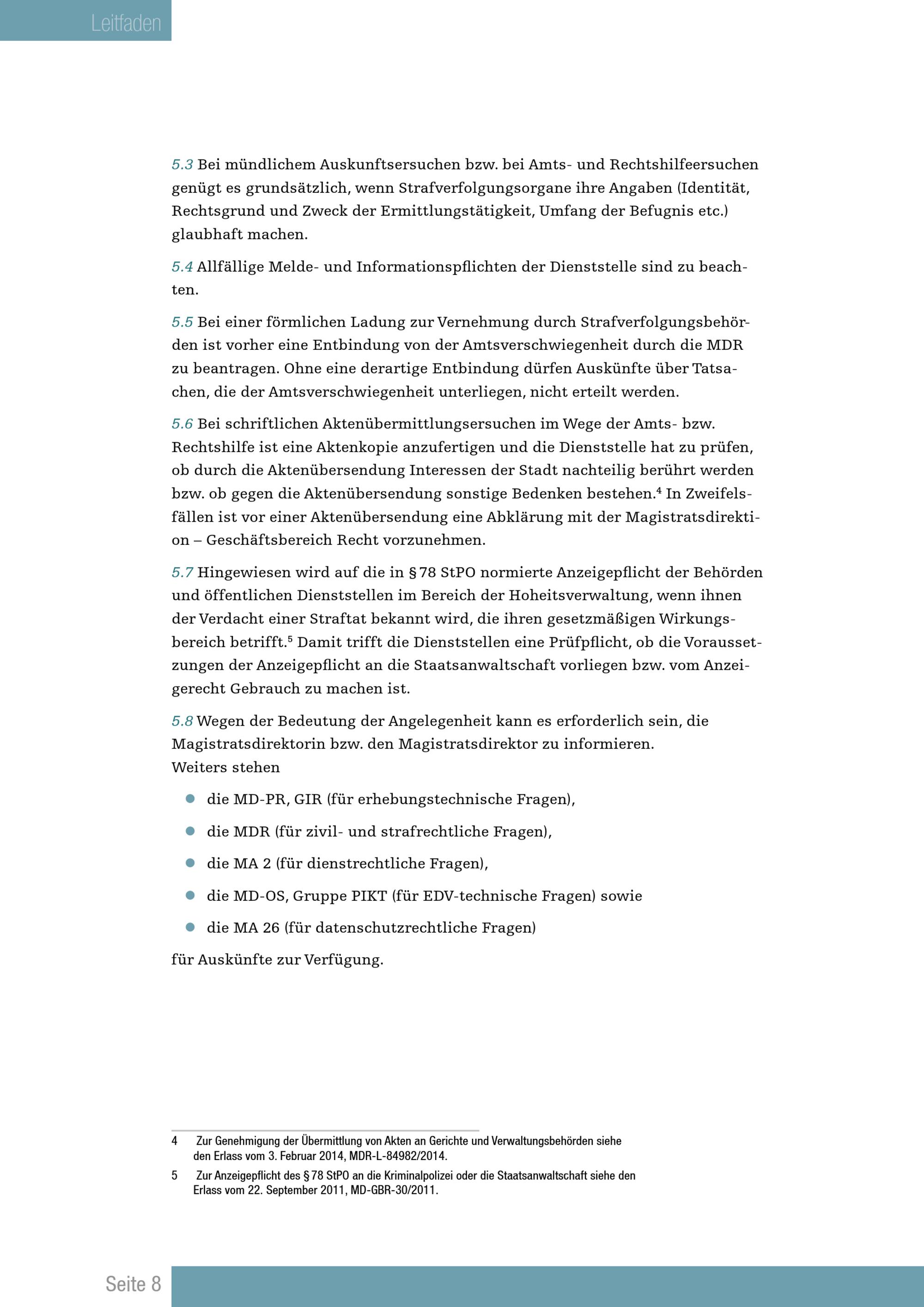 Leitfaden für den Kontakt mit Strafverfolgungsbehörden / Medieninhaber und Herausgeber: Stadt Wien - Presse- und Informationsdienst (MA 53) ; Für den Inhalt verantwortlich: Paul Jauernig (MD-PR)