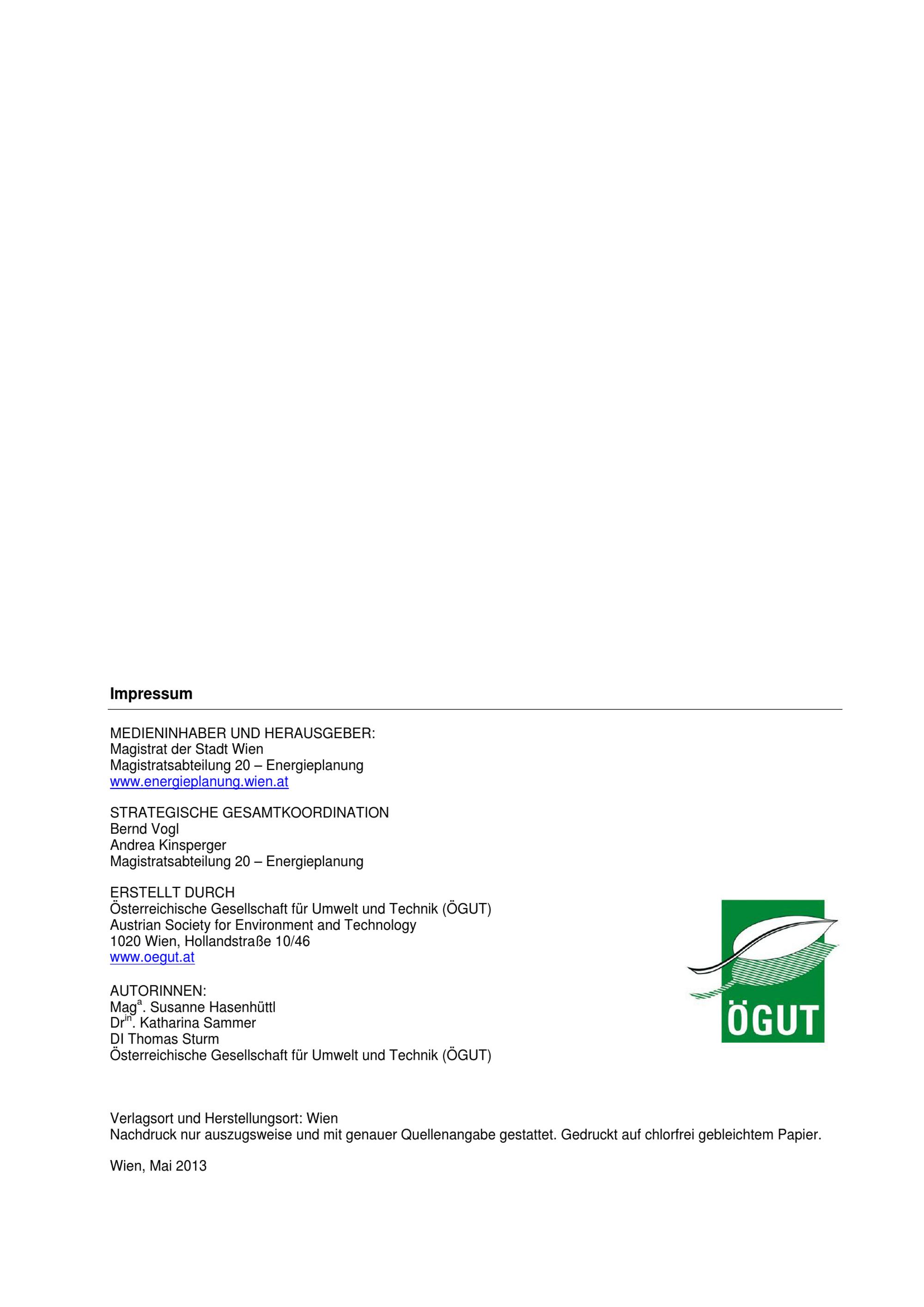 Alternative Finanzierungsmodelle mit besonderem Fokus auf (Energie-) Infrastrukturprojekte der Stadt Wien : Bericht / Medieninhaber und Herausgeber: Magistrat der Stadt Wien Magistratsabteilung 20 - Energieplanung ; Autorinnen: Maga. Susanne Hasenhüttl, Drin. Katharina Sammer, DI Thomas Sturm