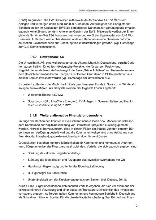 Alternative Finanzierungsmodelle mit besonderem Fokus auf (Energie-) Infrastrukturprojekte der Stadt Wien : Bericht / Medieninhaber und Herausgeber: Magistrat der Stadt Wien Magistratsabteilung 20 - Energieplanung ; Autorinnen: Maga. Susanne Hasenhüttl, Drin. Katharina Sammer, DI Thomas Sturm