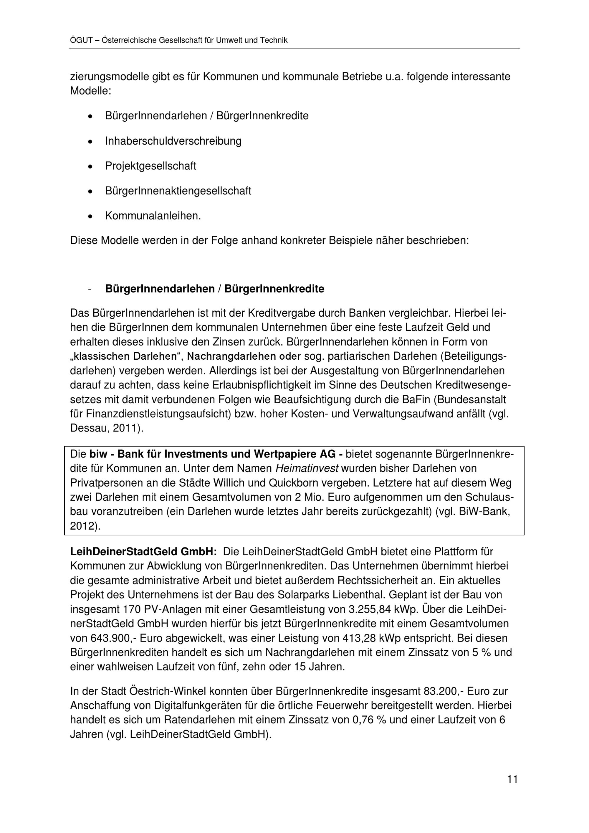 Alternative Finanzierungsmodelle mit besonderem Fokus auf (Energie-) Infrastrukturprojekte der Stadt Wien : Bericht / Medieninhaber und Herausgeber: Magistrat der Stadt Wien Magistratsabteilung 20 - Energieplanung ; Autorinnen: Maga. Susanne Hasenhüttl, Drin. Katharina Sammer, DI Thomas Sturm
