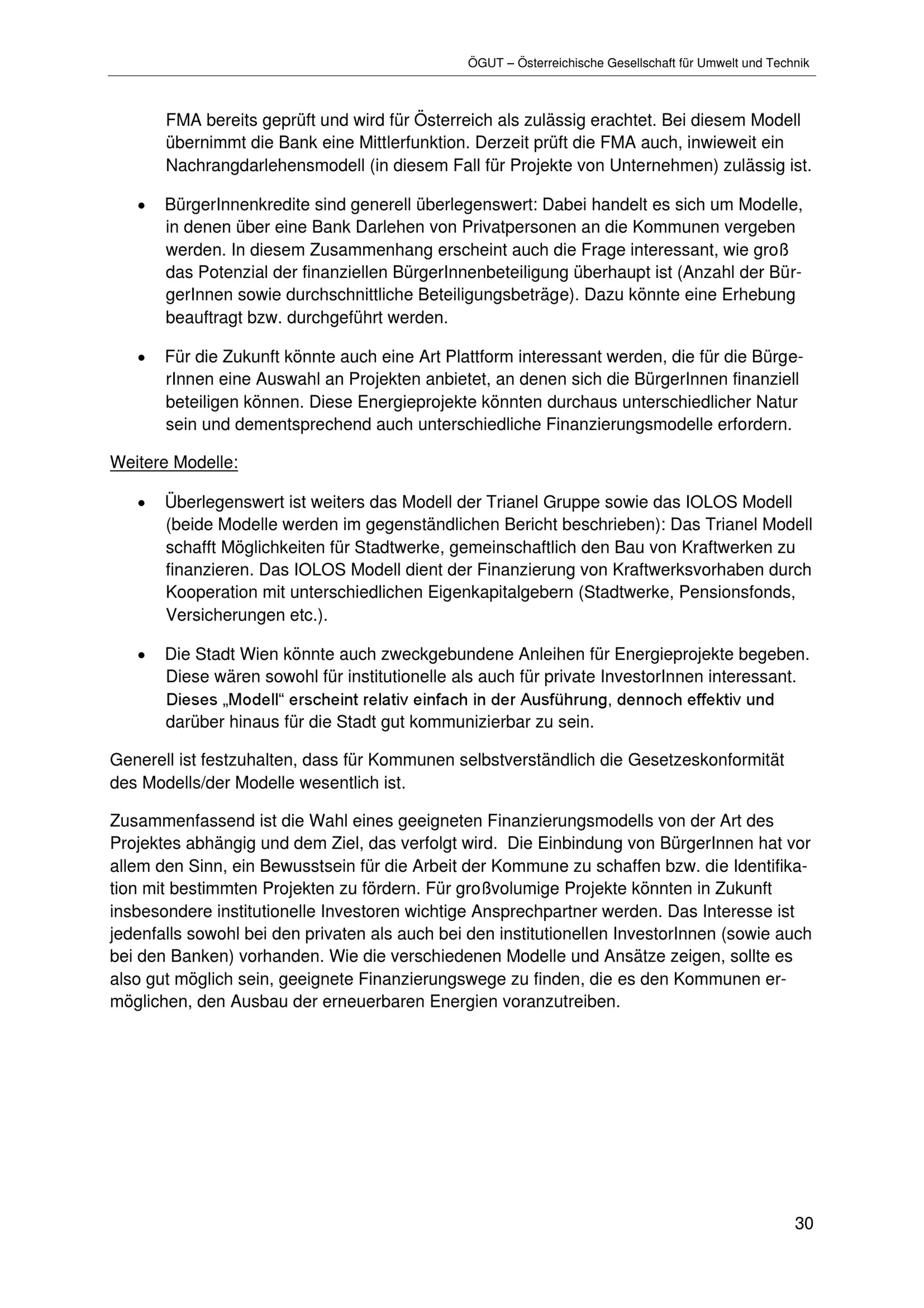 Alternative Finanzierungsmodelle mit besonderem Fokus auf (Energie-) Infrastrukturprojekte der Stadt Wien : Bericht / Medieninhaber und Herausgeber: Magistrat der Stadt Wien Magistratsabteilung 20 - Energieplanung ; Autorinnen: Maga. Susanne Hasenhüttl, Drin. Katharina Sammer, DI Thomas Sturm