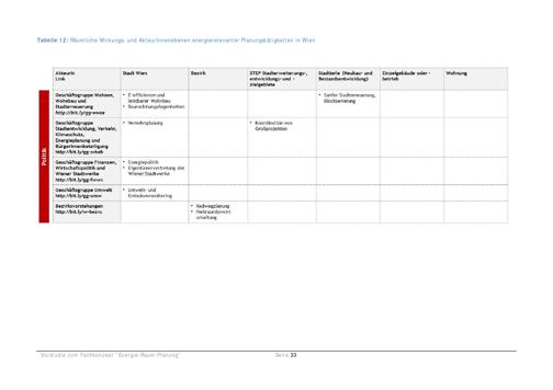 Vorstudie zum Fachkonzept “Energie-Raum-Planung“ / Auftraggeber: Magistrat der Stadt Wien, Magistratsabteilung 20 Energieplanung ; Auftragnehmer: Department für Raumplanung, TU Wien ; Hartmut Dumke, Thomas Brus, Herbert Hemis