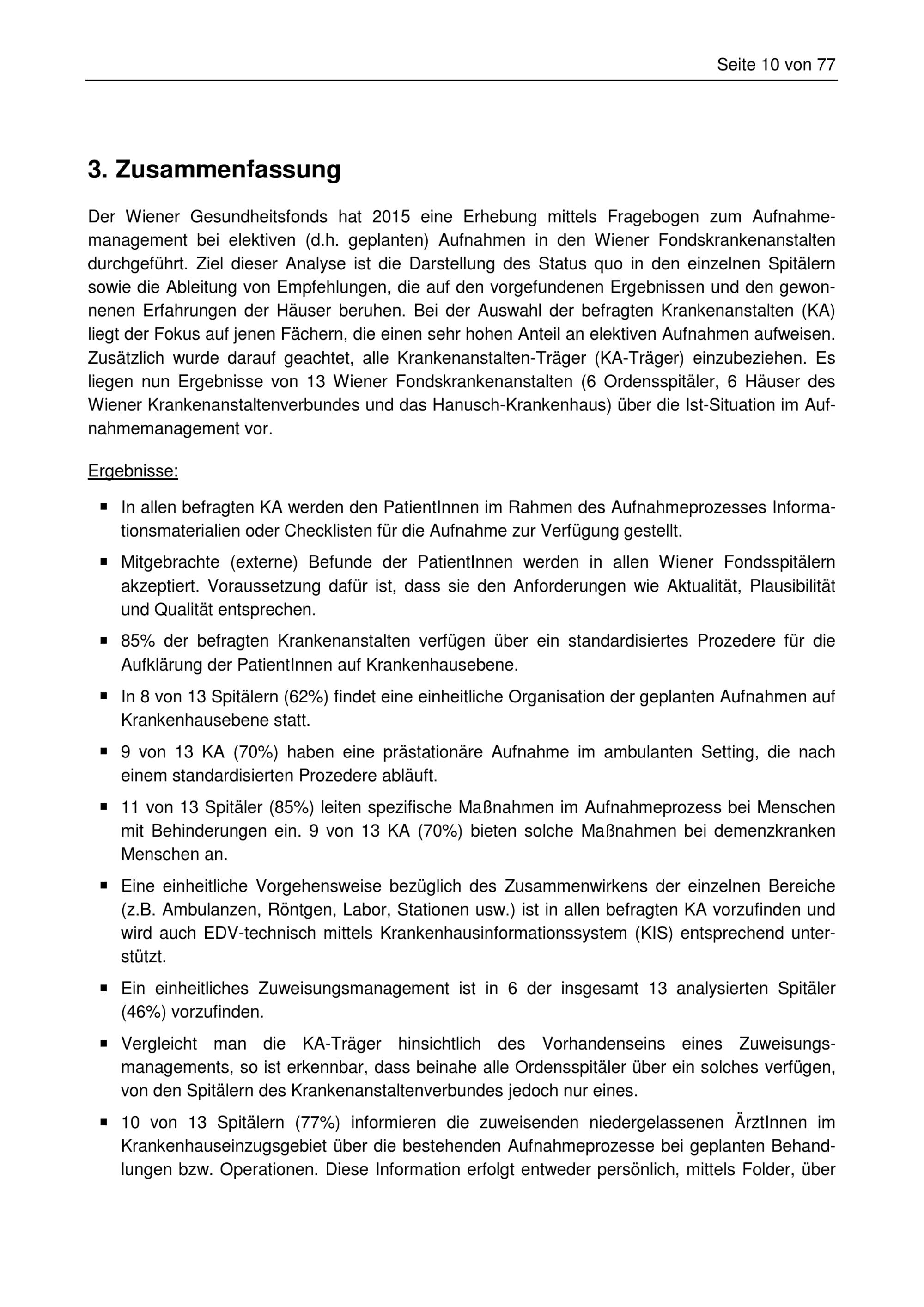 Aufnahmemanagement bei geplanten Aufnahmen in den Wiener Fondskrankenanstalten : Statusbericht / Magistratsabteilung 24 - Gesundheits- und Sozialplanung, Wiener Gesundheitsfonds