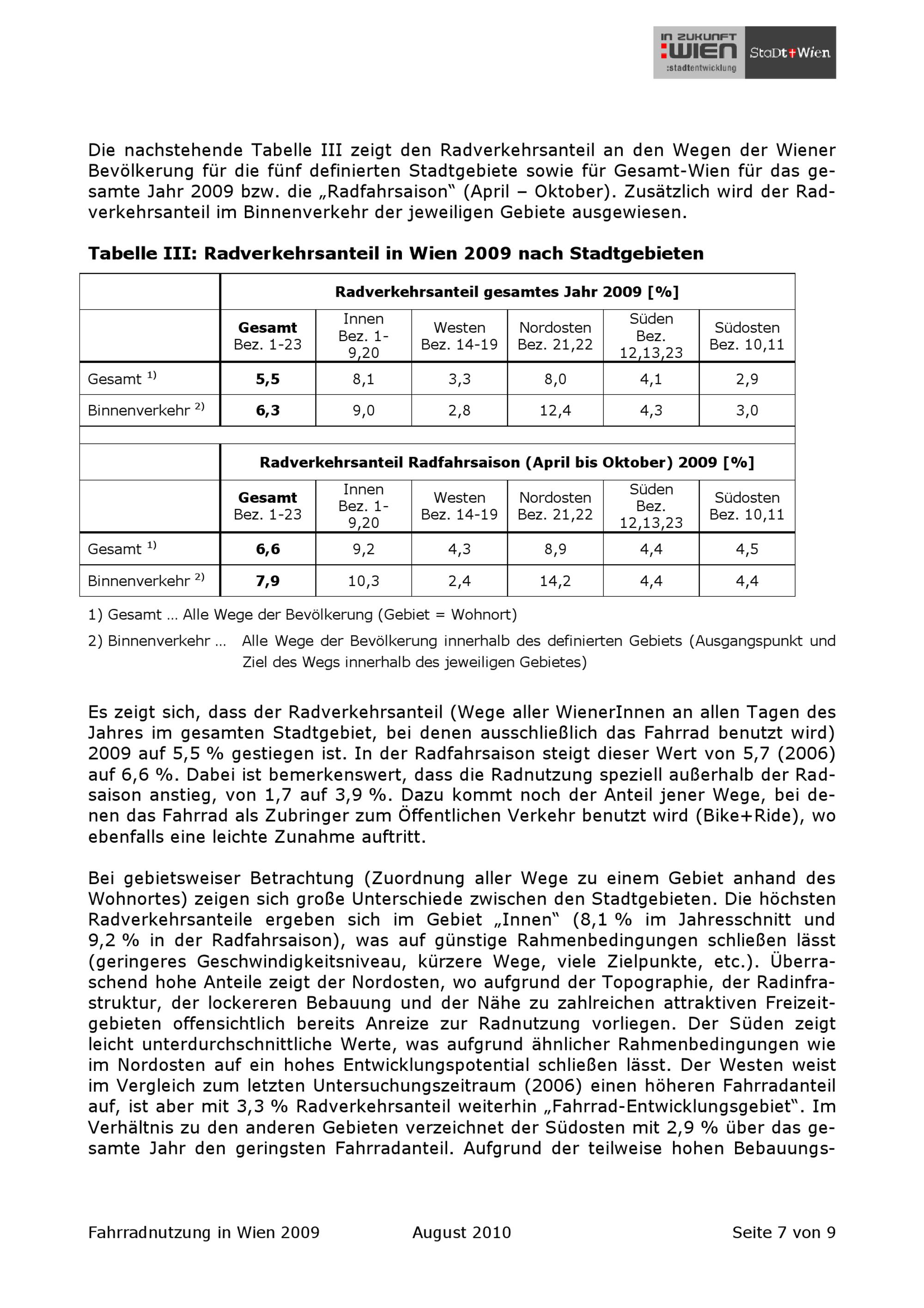 Fahrrad-Mobilität in Wien : Fahrradnutzung in Wien 2009 : Radverkehrsspezifische Ergebnisse der Haushaltsbefragung Wien 2009 / im Auftrag der Magistratsabteilung 18 - Stadtentwicklung und Stadtplanung ; Auswertungen, Analyse und Erstellung: Socialdata Institut für Verkehrs-und Infrastrukturforschung GmbH