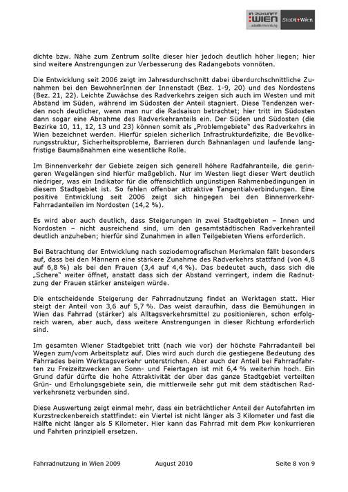 Fahrrad-Mobilität in Wien : Fahrradnutzung in Wien 2009 : Radverkehrsspezifische Ergebnisse der Haushaltsbefragung Wien 2009 / im Auftrag der Magistratsabteilung 18 - Stadtentwicklung und Stadtplanung ; Auswertungen, Analyse und Erstellung: Socialdata Institut für Verkehrs-und Infrastrukturforschung GmbH