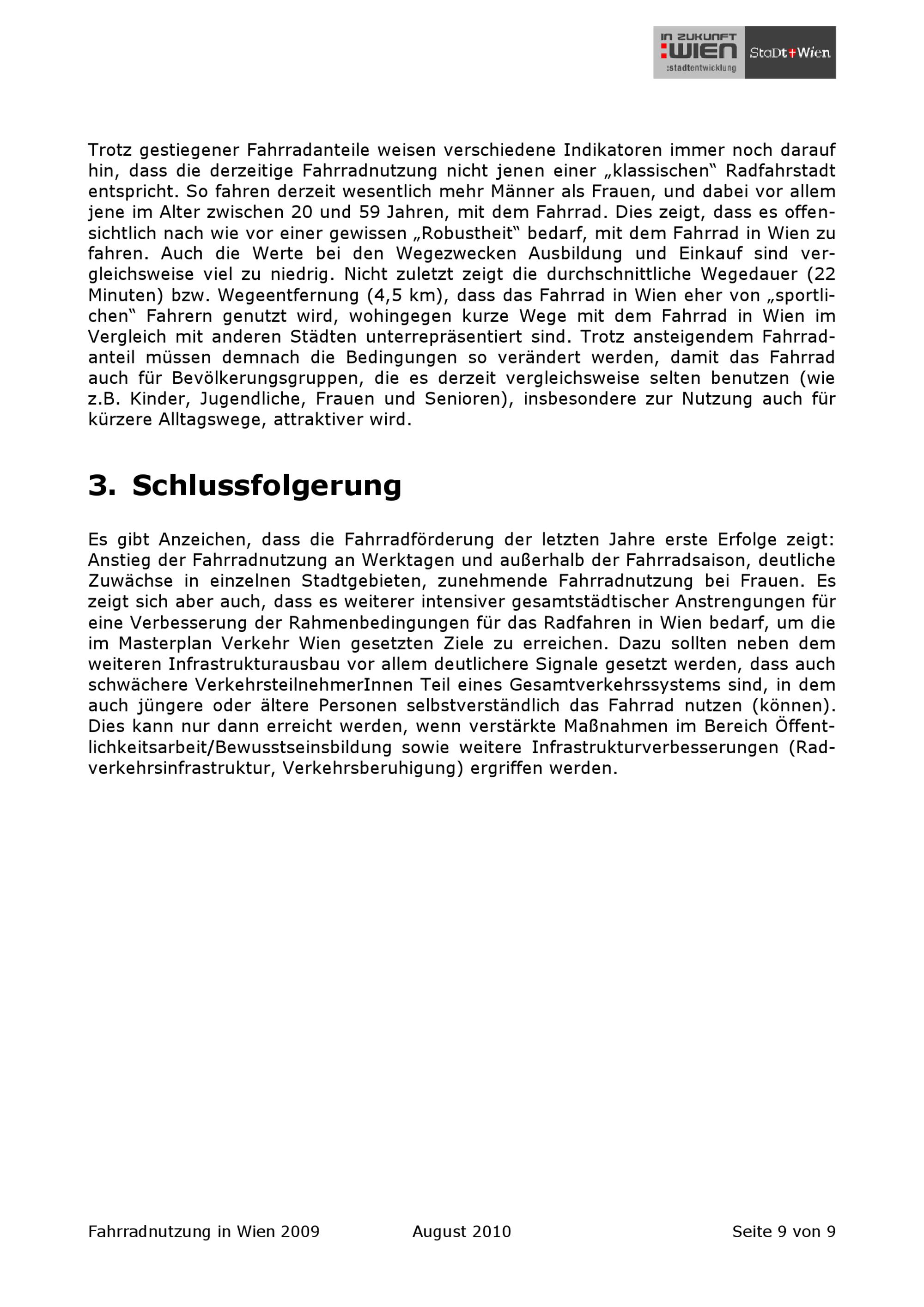 Fahrrad-Mobilität in Wien : Fahrradnutzung in Wien 2009 : Radverkehrsspezifische Ergebnisse der Haushaltsbefragung Wien 2009 / im Auftrag der Magistratsabteilung 18 - Stadtentwicklung und Stadtplanung ; Auswertungen, Analyse und Erstellung: Socialdata Institut für Verkehrs-und Infrastrukturforschung GmbH