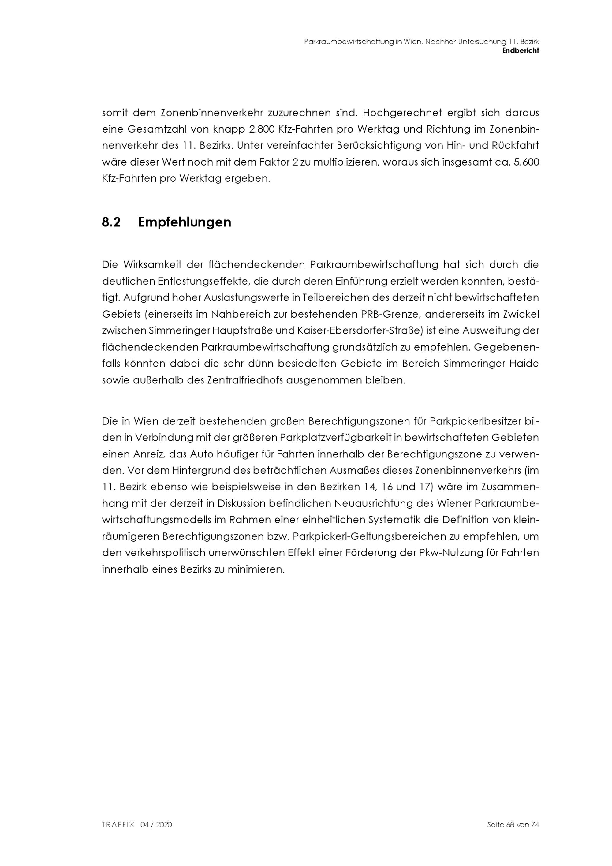 Ausweitung der Parkraumbewirtschaftung in Wien : Nachher-Untersuchung 11. Bezirk Endbericht / Stadt Wien - Stadtentwicklung und Stadtplanung ; TRAFFIX Verkehrsplanung GmbH