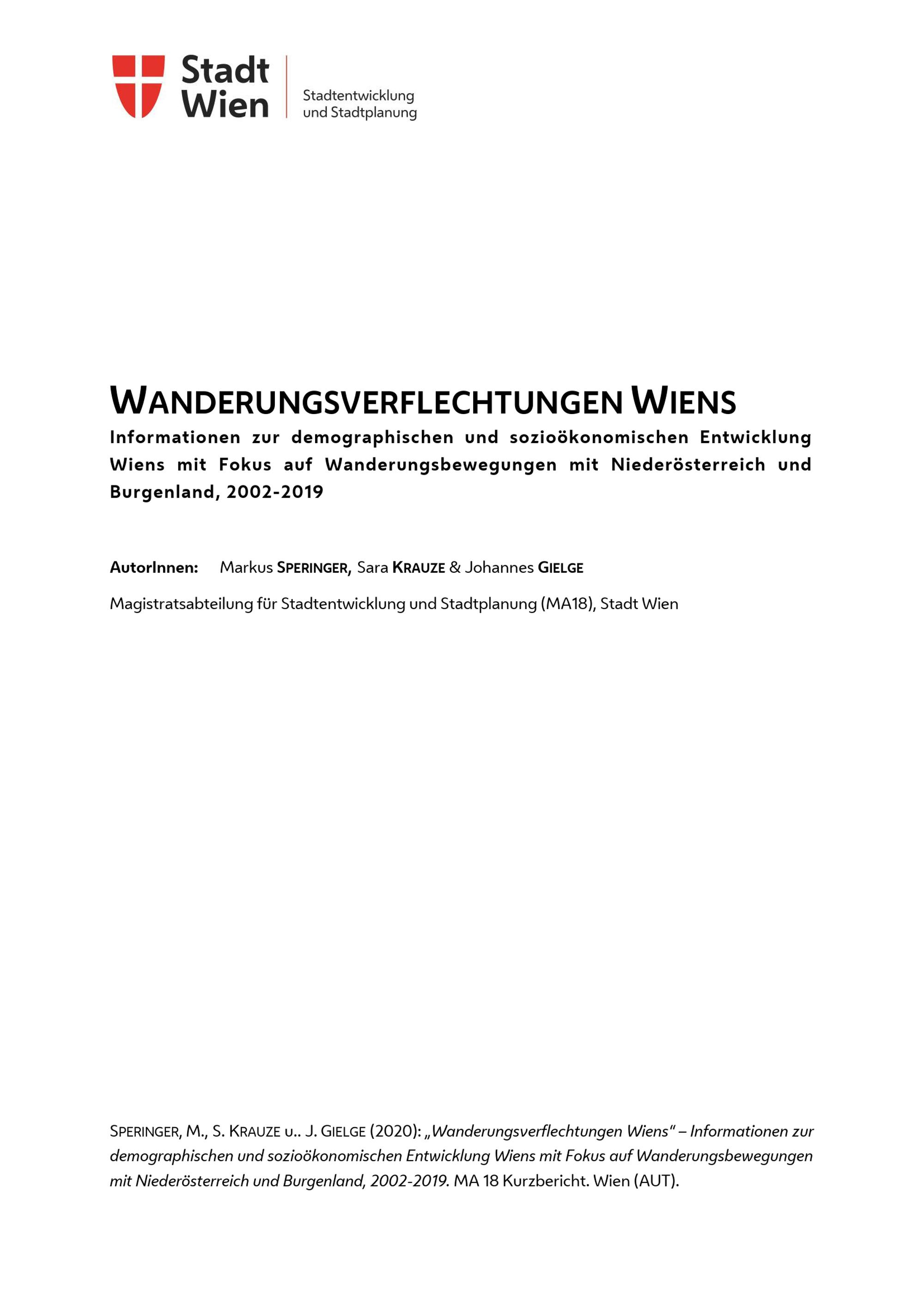 Wanderungsverflechtungen Wiens / Stadt Wien - Stadtentwicklung und Stadtplanung