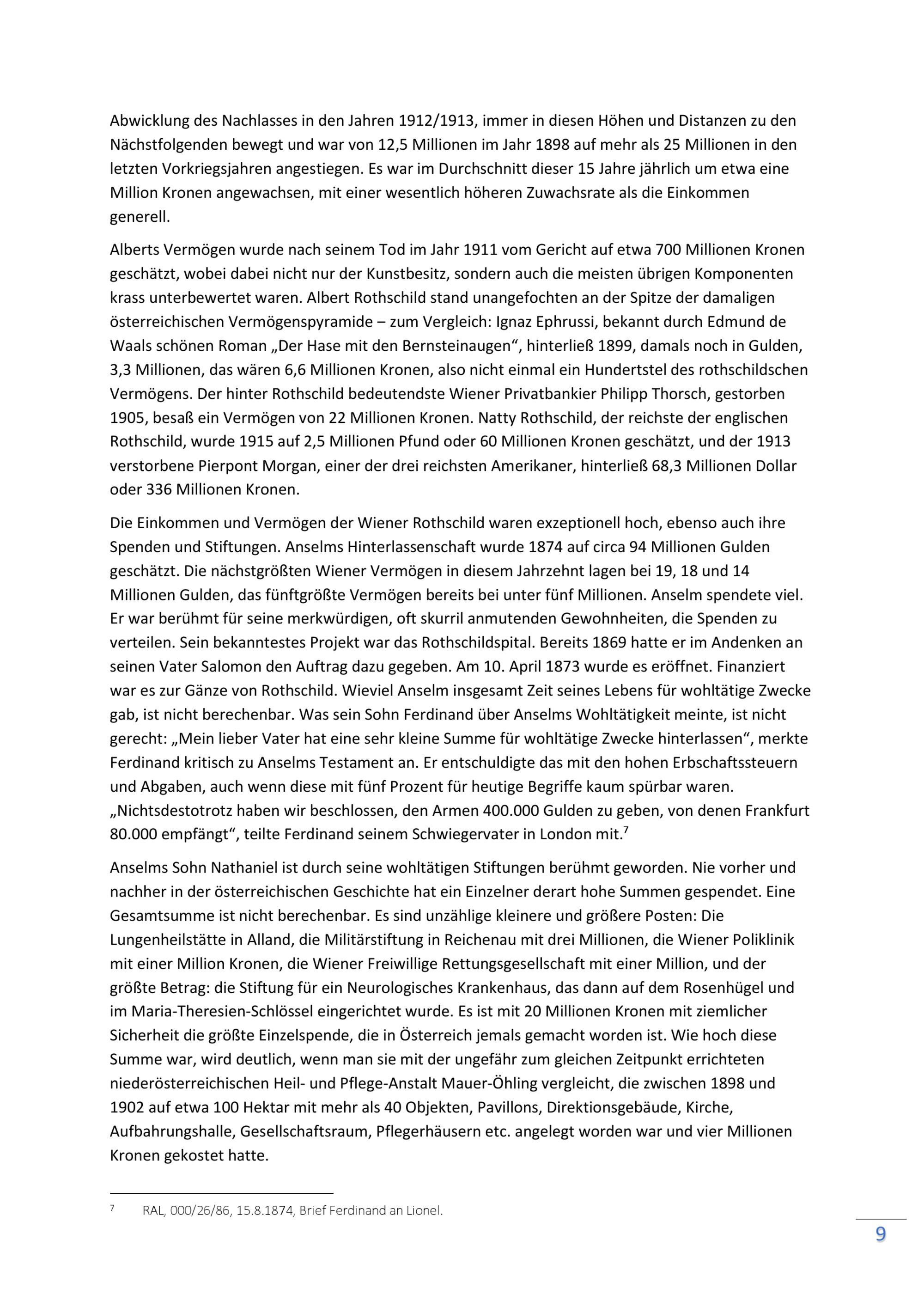Geschichte der Nathaniel Freiherr von Rothschild’schen Stiftung für Nervenkranke von ihrer Errichtung bis zu ihrer Reorganisation in der Nachkriegszeit / erstellt im Auftrag der Geschäftsgruppen Soziales, Gesundheit und Sport (Stadtrat Peter Hacker) sowie Kultur und Wissenschaft (Stadträtin Veronica Kaup-Hasler) ; Univ. Prof.in Dr.in Ilse Reiter-Zatloukal (Leitung), Mag. Dr. Gerhard Baumgartner, Univ. Prof. DDr. Oliver Rathkolb, Univ. Prof. Dr. Roman Sandgruber, Dr.in Ulrike Zimmerl ; Projektkoordination: Dr.in Brigitte Rigele, MAS ; ProjektmitarbeiterInnen: Dr.in Verena Pawlowsky, Dr. Harald Wendelin vom Forschungsbüro. Verein für wissenschaftliche und kulturelle Dienstleistungen / Bericht