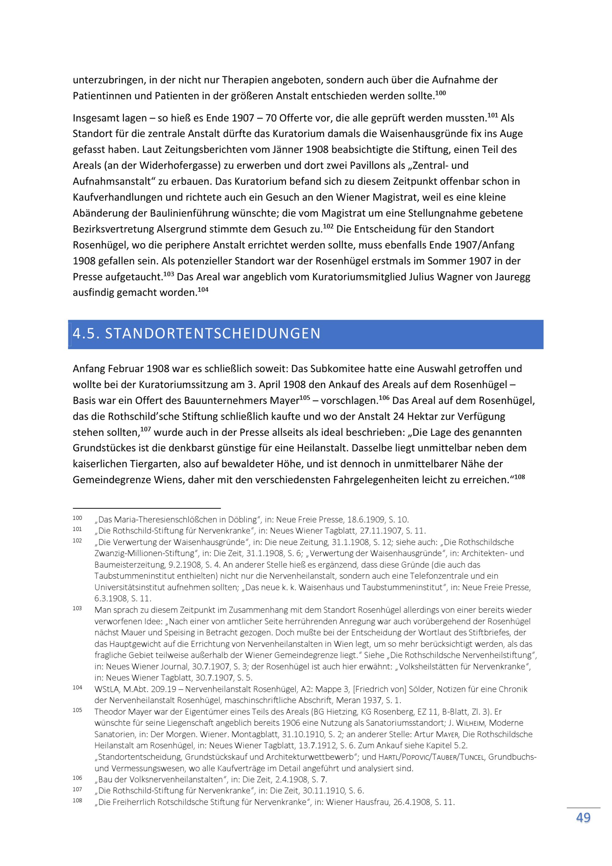 Geschichte der Nathaniel Freiherr von Rothschild’schen Stiftung für Nervenkranke von ihrer Errichtung bis zu ihrer Reorganisation in der Nachkriegszeit / erstellt im Auftrag der Geschäftsgruppen Soziales, Gesundheit und Sport (Stadtrat Peter Hacker) sowie Kultur und Wissenschaft (Stadträtin Veronica Kaup-Hasler) ; Univ. Prof.in Dr.in Ilse Reiter-Zatloukal (Leitung), Mag. Dr. Gerhard Baumgartner, Univ. Prof. DDr. Oliver Rathkolb, Univ. Prof. Dr. Roman Sandgruber, Dr.in Ulrike Zimmerl ; Projektkoordination: Dr.in Brigitte Rigele, MAS ; ProjektmitarbeiterInnen: Dr.in Verena Pawlowsky, Dr. Harald Wendelin vom Forschungsbüro. Verein für wissenschaftliche und kulturelle Dienstleistungen / Bericht