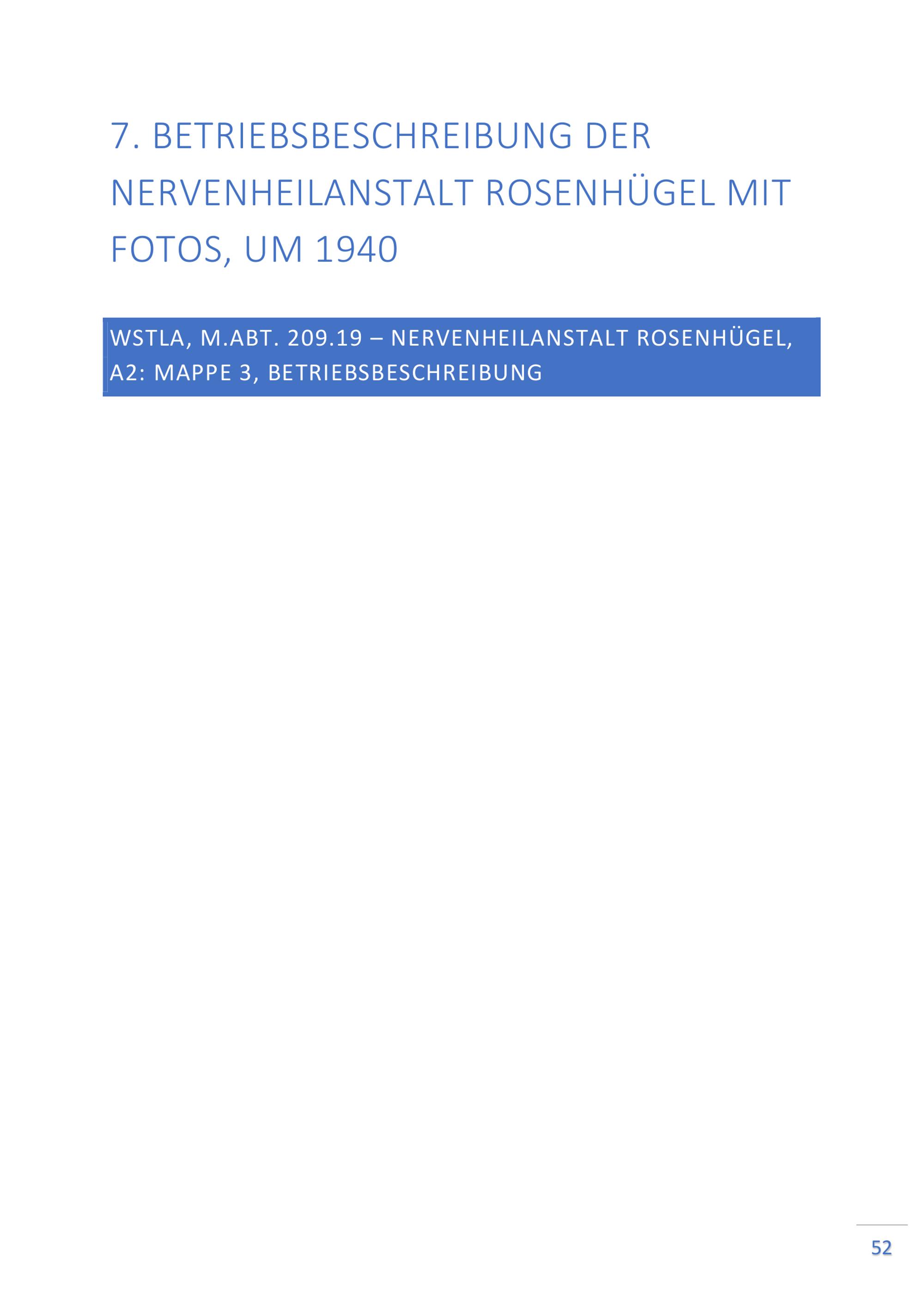 Geschichte der Nathaniel Freiherr von Rothschild’schen Stiftung für Nervenkranke von ihrer Errichtung bis zu ihrer Reorganisation in der Nachkriegszeit / erstellt im Auftrag der Geschäftsgruppen Soziales, Gesundheit und Sport (Stadtrat Peter Hacker) sowie Kultur und Wissenschaft (Stadträtin Veronica Kaup-Hasler) ; Univ. Prof.in Dr.in Ilse Reiter-Zatloukal (Leitung), Mag. Dr. Gerhard Baumgartner, Univ. Prof. DDr. Oliver Rathkolb, Univ. Prof. Dr. Roman Sandgruber, Dr.in Ulrike Zimmerl ; Projektkoordination: Dr.in Brigitte Rigele, MAS ; ProjektmitarbeiterInnen: Dr.in Verena Pawlowsky, Dr. Harald Wendelin vom Forschungsbüro. Verein für wissenschaftliche und kulturelle Dienstleistungen / Anhang