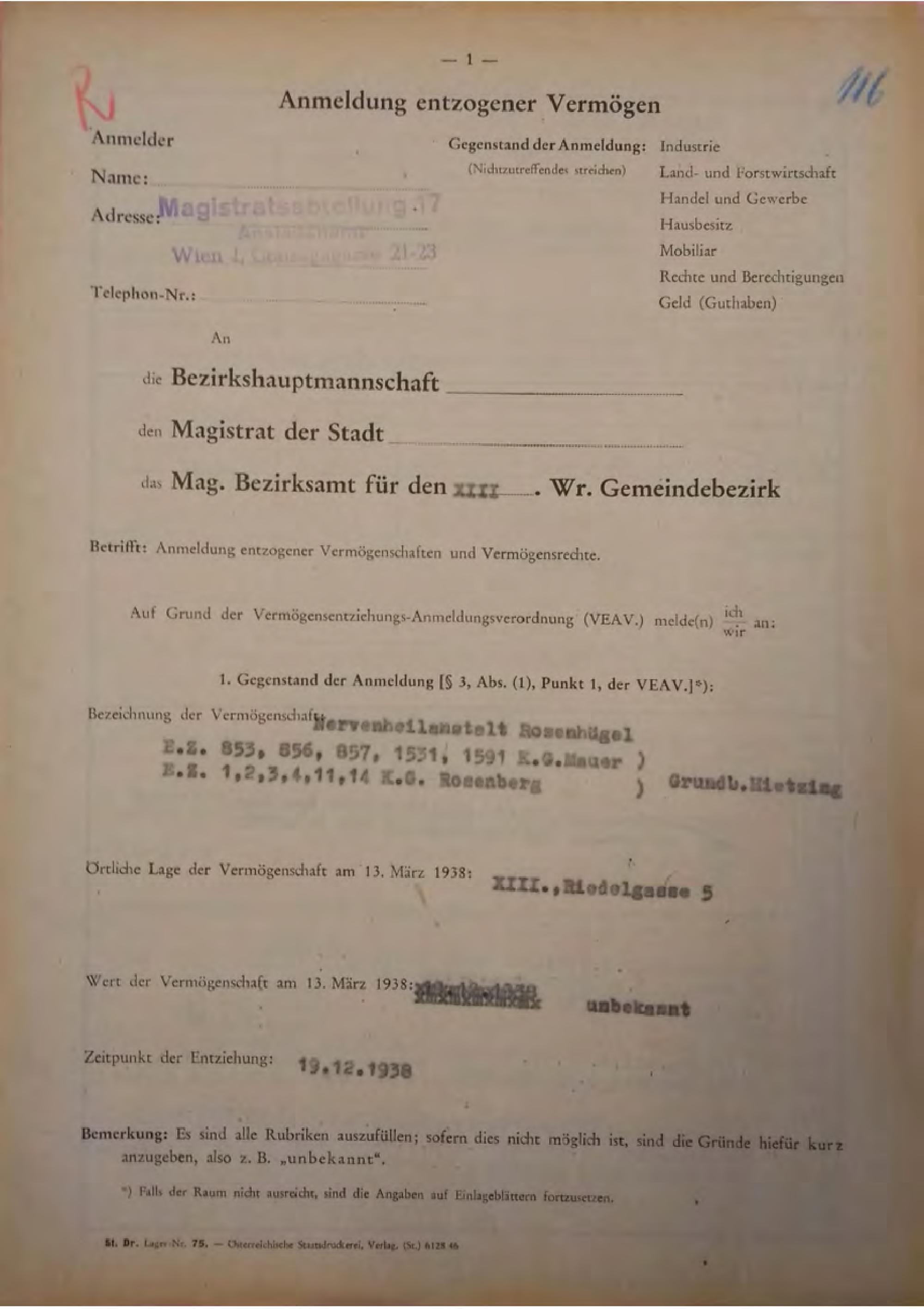Geschichte der Nathaniel Freiherr von Rothschild’schen Stiftung für Nervenkranke von ihrer Errichtung bis zu ihrer Reorganisation in der Nachkriegszeit / erstellt im Auftrag der Geschäftsgruppen Soziales, Gesundheit und Sport (Stadtrat Peter Hacker) sowie Kultur und Wissenschaft (Stadträtin Veronica Kaup-Hasler) ; Univ. Prof.in Dr.in Ilse Reiter-Zatloukal (Leitung), Mag. Dr. Gerhard Baumgartner, Univ. Prof. DDr. Oliver Rathkolb, Univ. Prof. Dr. Roman Sandgruber, Dr.in Ulrike Zimmerl ; Projektkoordination: Dr.in Brigitte Rigele, MAS ; ProjektmitarbeiterInnen: Dr.in Verena Pawlowsky, Dr. Harald Wendelin vom Forschungsbüro. Verein für wissenschaftliche und kulturelle Dienstleistungen / Anhang