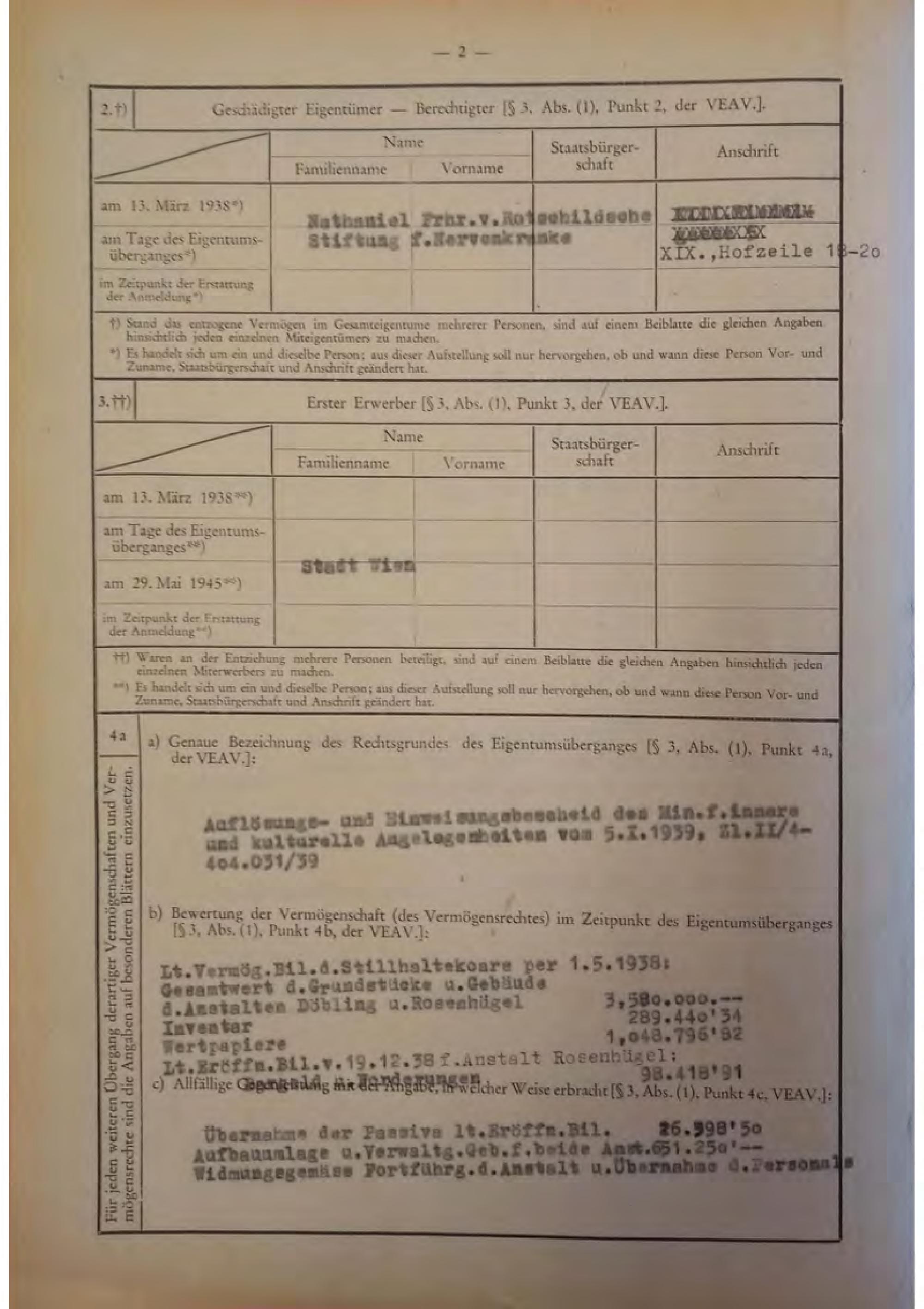 Geschichte der Nathaniel Freiherr von Rothschild’schen Stiftung für Nervenkranke von ihrer Errichtung bis zu ihrer Reorganisation in der Nachkriegszeit / erstellt im Auftrag der Geschäftsgruppen Soziales, Gesundheit und Sport (Stadtrat Peter Hacker) sowie Kultur und Wissenschaft (Stadträtin Veronica Kaup-Hasler) ; Univ. Prof.in Dr.in Ilse Reiter-Zatloukal (Leitung), Mag. Dr. Gerhard Baumgartner, Univ. Prof. DDr. Oliver Rathkolb, Univ. Prof. Dr. Roman Sandgruber, Dr.in Ulrike Zimmerl ; Projektkoordination: Dr.in Brigitte Rigele, MAS ; ProjektmitarbeiterInnen: Dr.in Verena Pawlowsky, Dr. Harald Wendelin vom Forschungsbüro. Verein für wissenschaftliche und kulturelle Dienstleistungen / Anhang