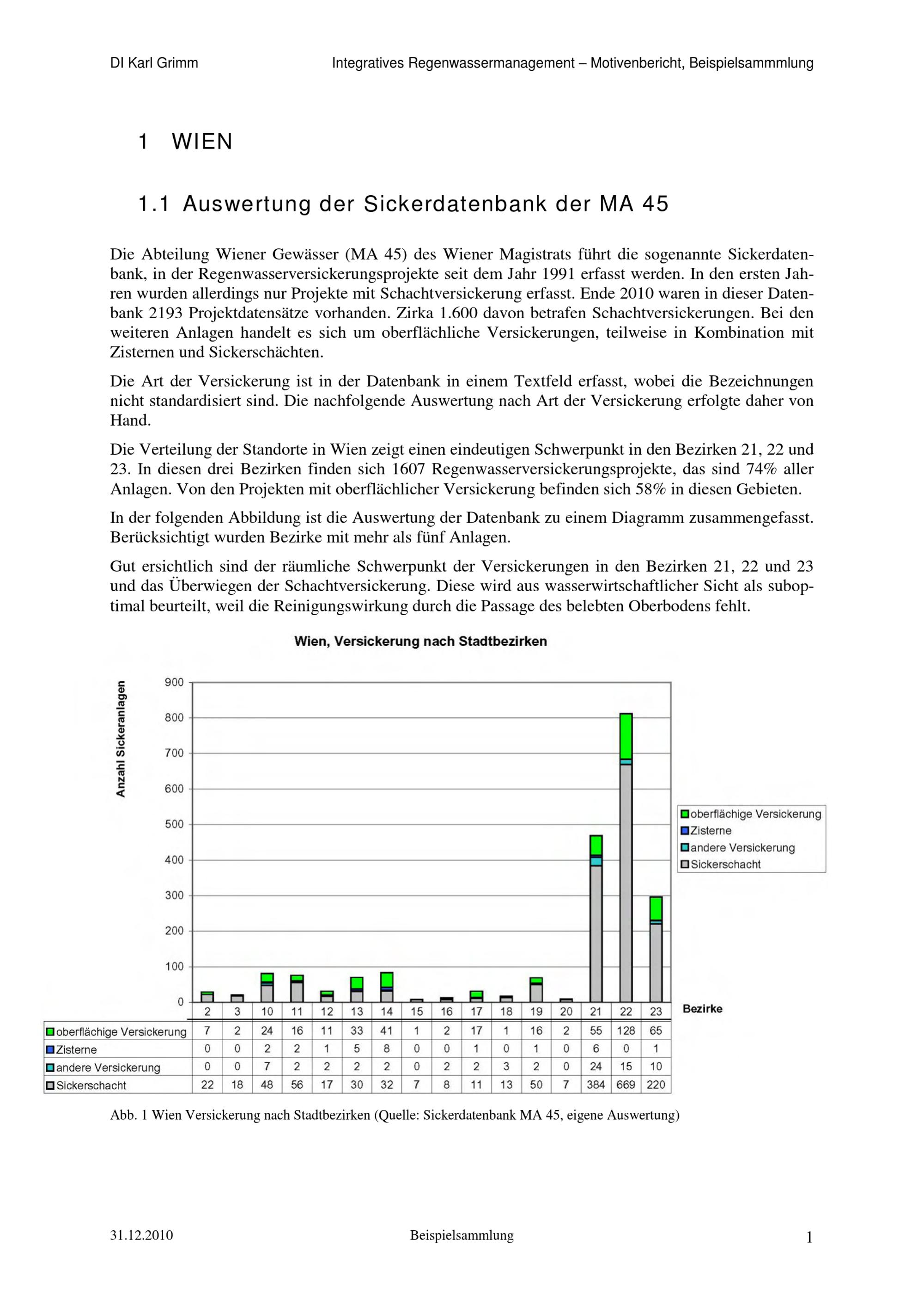 Integratives Regenwassermanagement / Autor: Dipl.-Ing. Karl Grimm, Ingenieurkonsulent für Landschaftsplanung und -pflege ; im Auftrag der Wiener Umweltschutzabteilung - MA 22 / Beispielsammlung