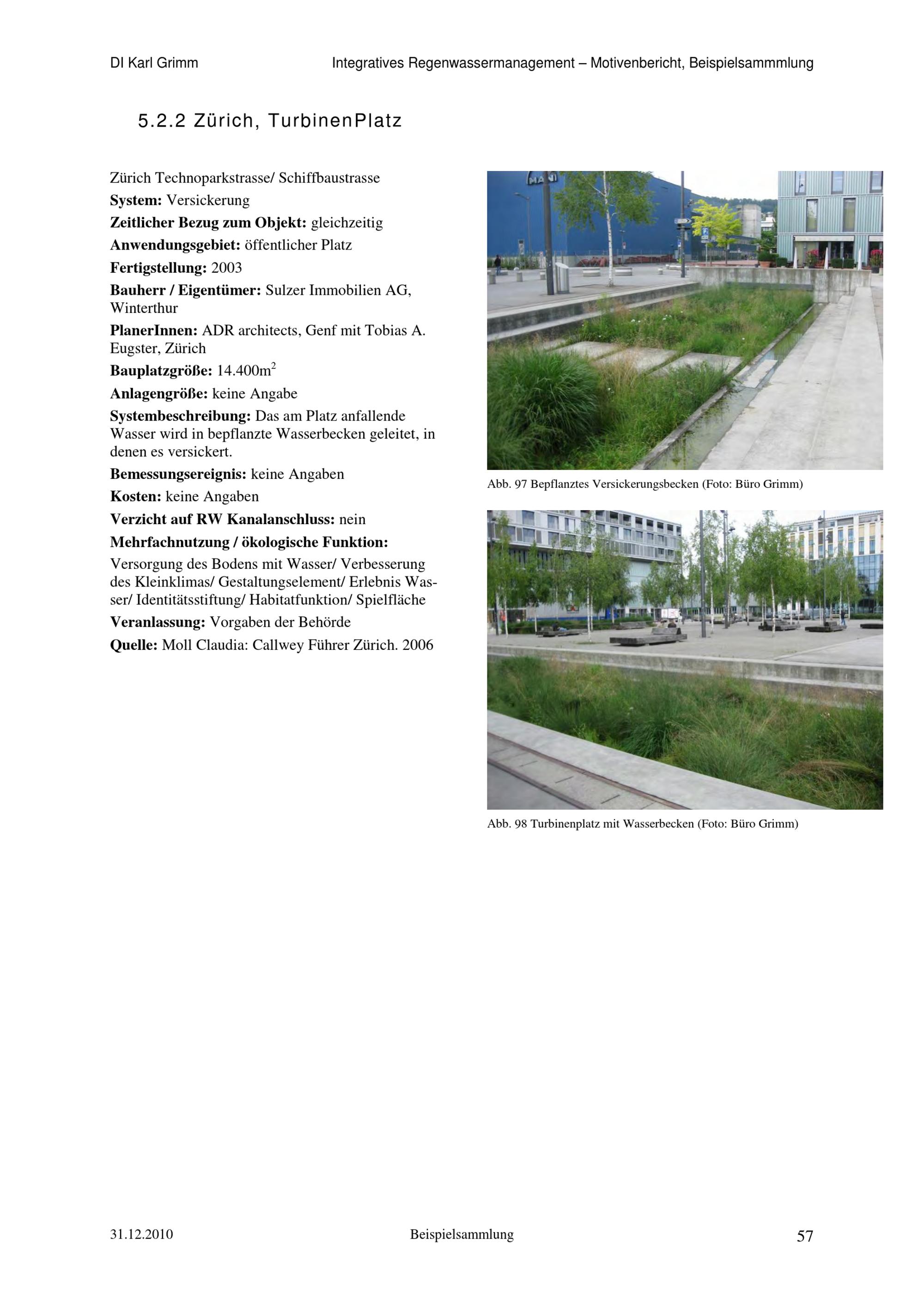 Integratives Regenwassermanagement / Autor: Dipl.-Ing. Karl Grimm, Ingenieurkonsulent für Landschaftsplanung und -pflege ; im Auftrag der Wiener Umweltschutzabteilung - MA 22 / Beispielsammlung