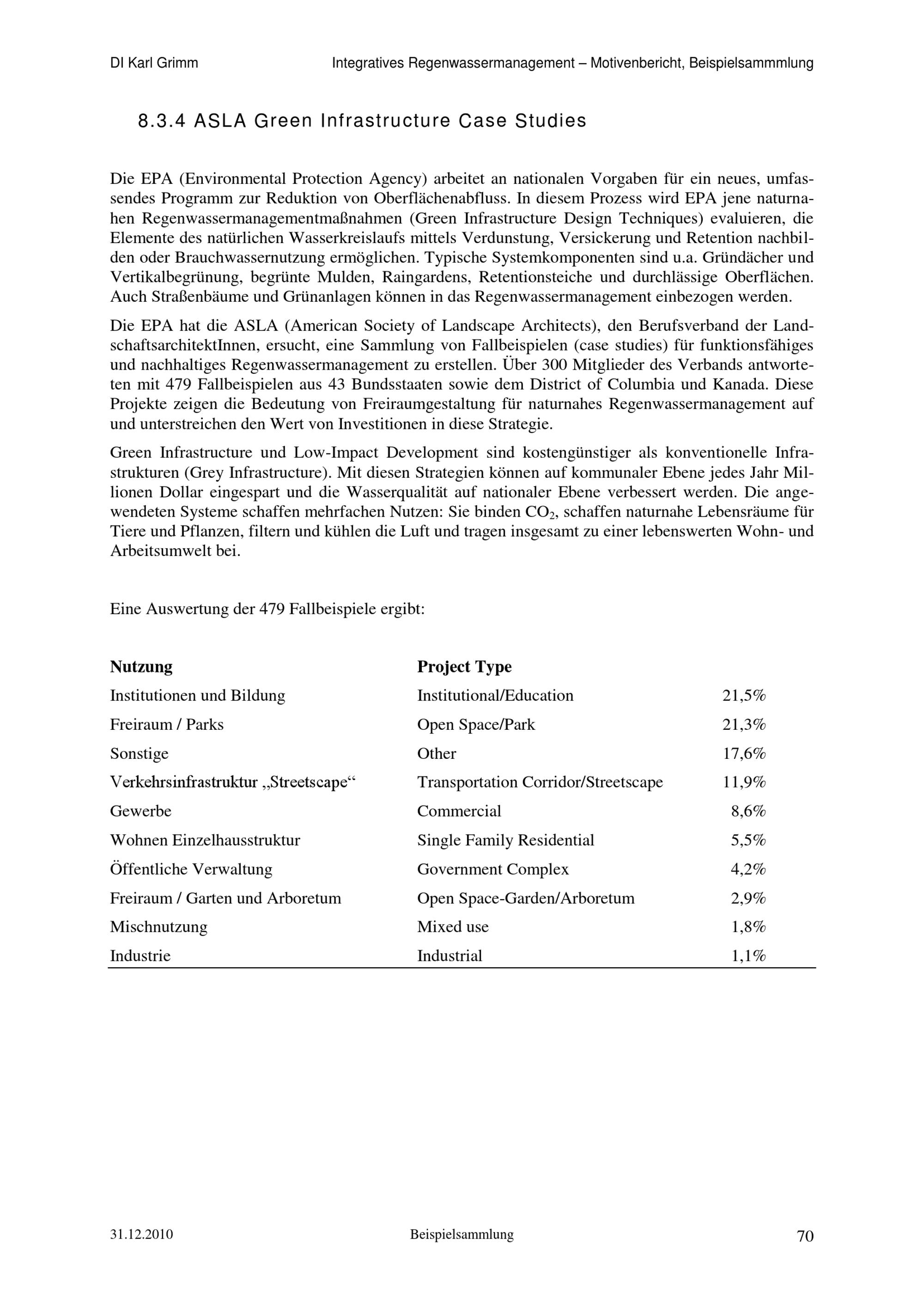Integratives Regenwassermanagement / Autor: Dipl.-Ing. Karl Grimm, Ingenieurkonsulent für Landschaftsplanung und -pflege ; im Auftrag der Wiener Umweltschutzabteilung - MA 22 / Beispielsammlung