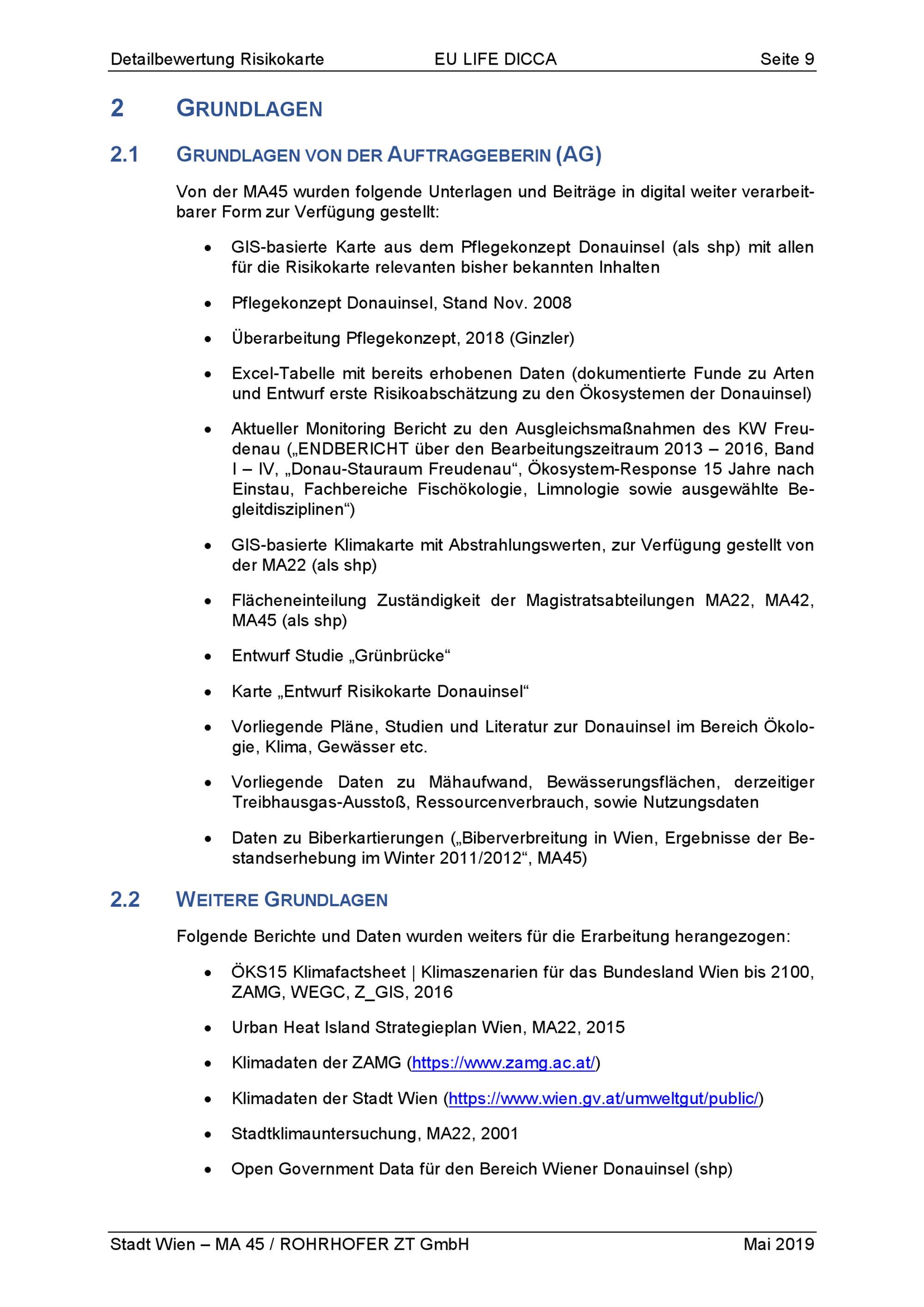 Detailbewertung der Klimaresistenz/-resilienz von Ökosystemen auf der Donauinsel : Kurzbericht = EU Life Dicca : Climate Change Adaptation of the Ecosystem Danube Island / Magistratsabteilung 45