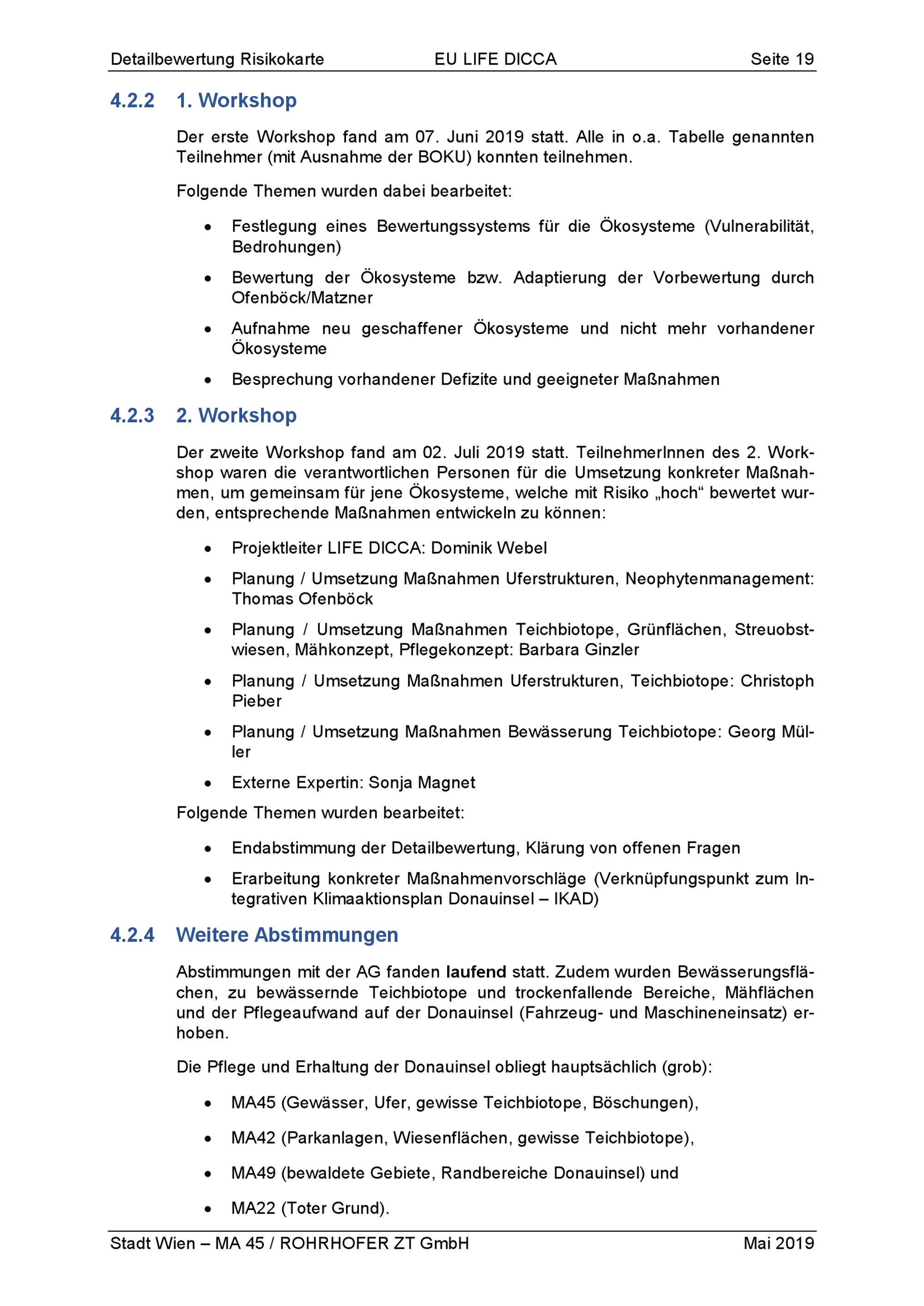 Detailbewertung der Klimaresistenz/-resilienz von Ökosystemen auf der Donauinsel : Kurzbericht = EU Life Dicca : Climate Change Adaptation of the Ecosystem Danube Island / Magistratsabteilung 45