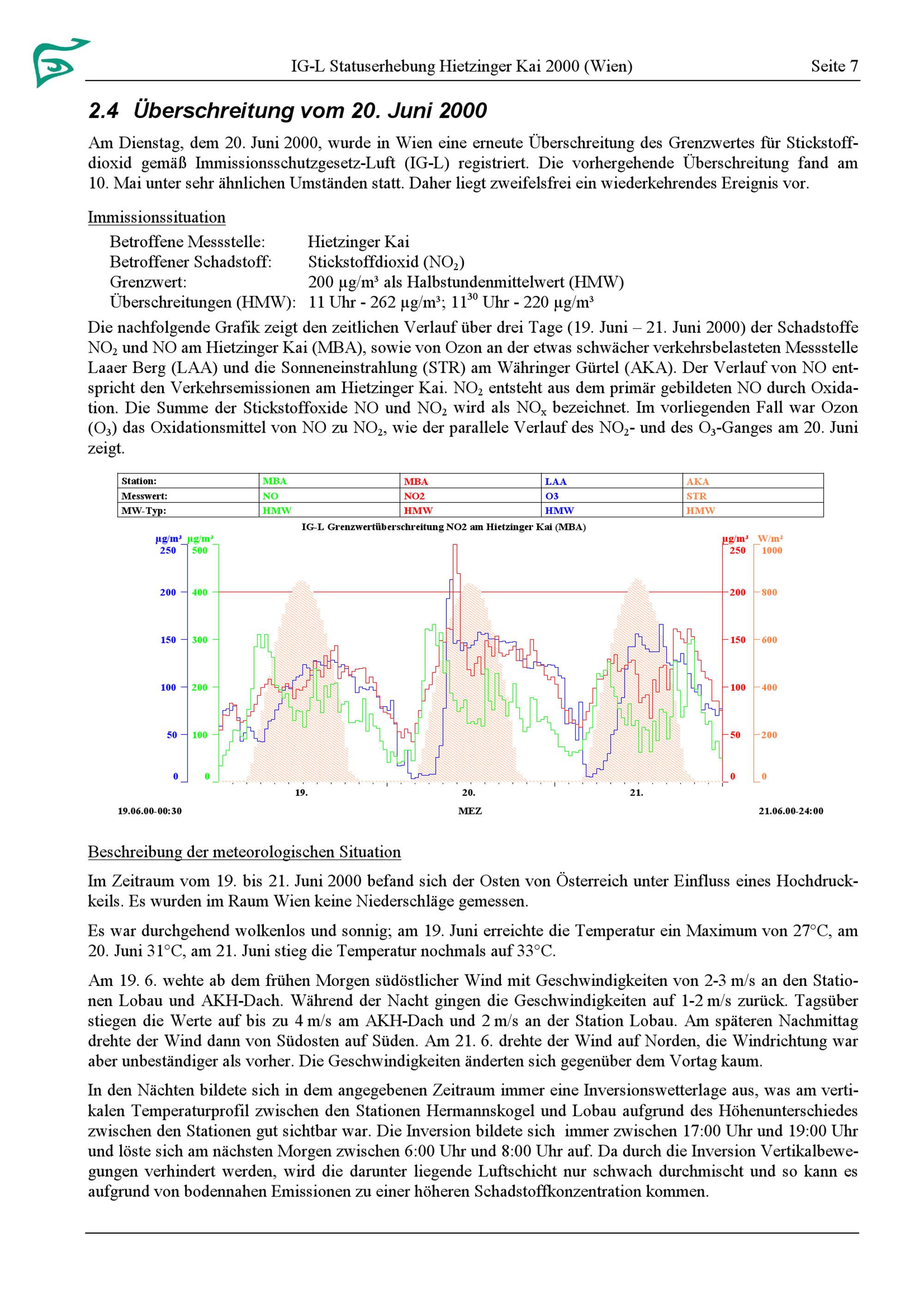 Statuserhebung Hietzinger Kai 2000 Stickstoffdioxid (NO2) : gemäß Immissionsschutzgesetz - Luft / Roman Augustyn [und 3 weitere] ; Magistrat der Stadt Wien MA 22 - Umweltschutz