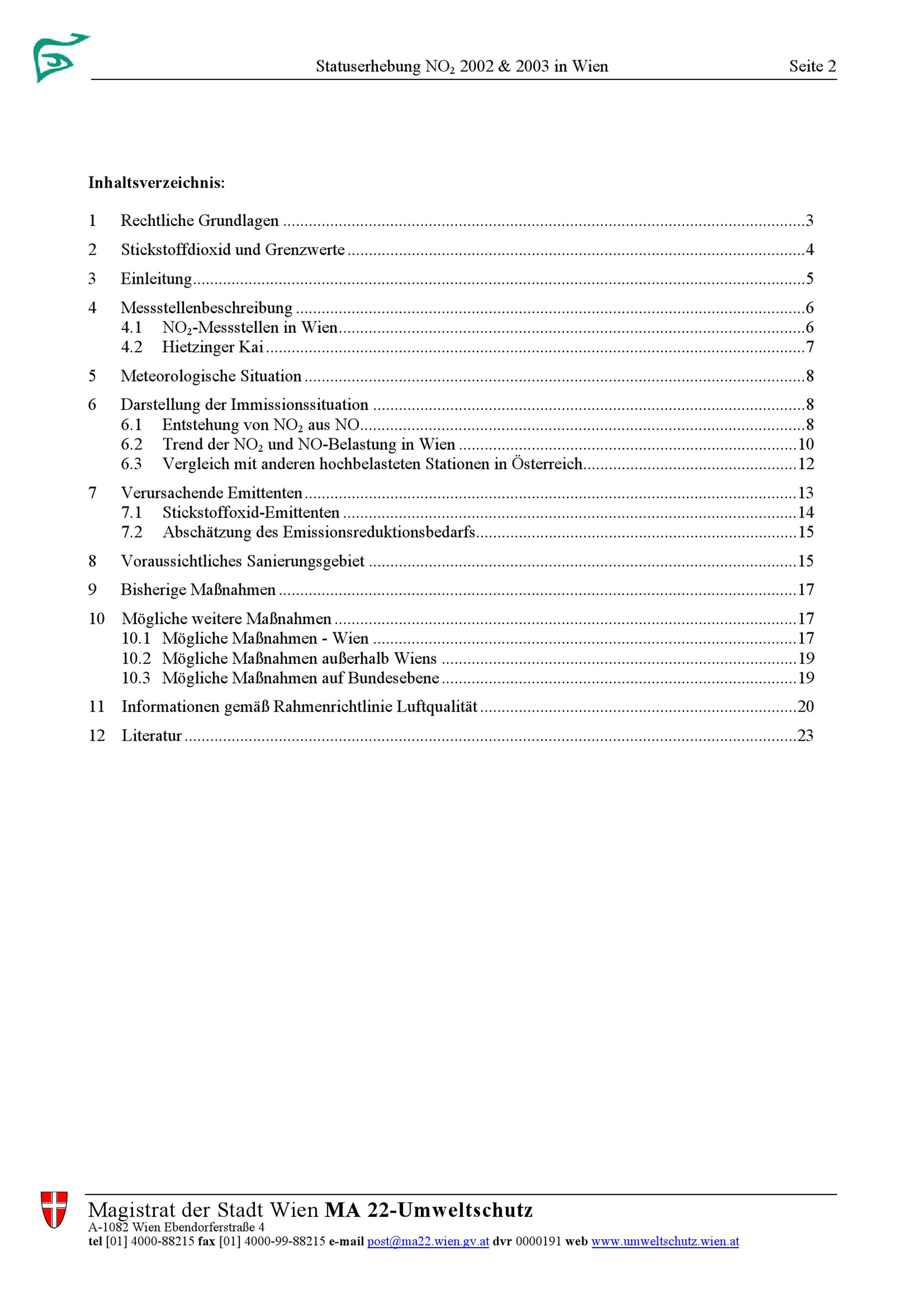 Statuserhebung NO2 2002 & 2003 in Wien : gemäß Immissionsschutzgesetz - Luft : basierend auf einer Studie des Umweltbundesamtes / Roman Augustyn [und 3 weitere] ; Magistrat der Stadt Wien MA 22 - Umweltschutz