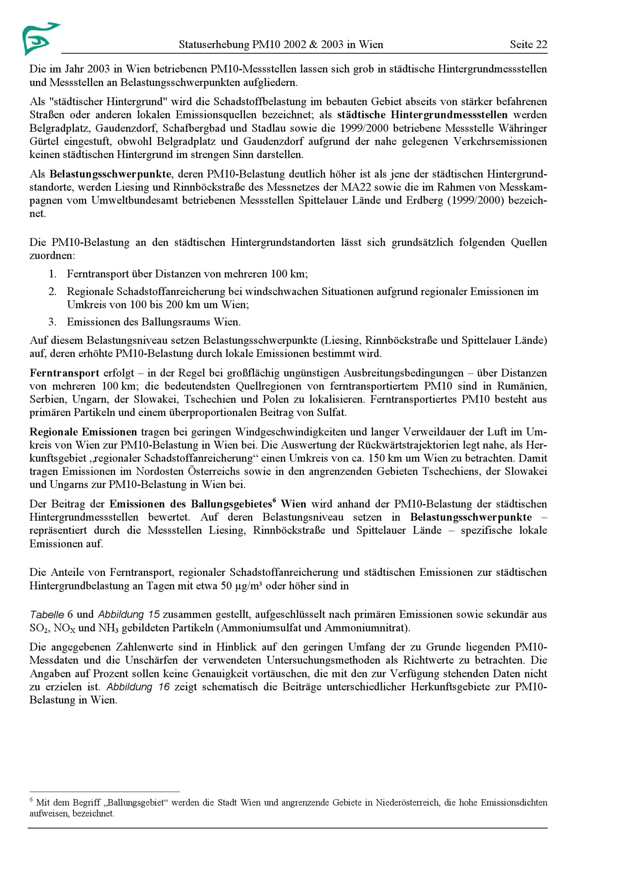 Statuserhebung PM10 2002 & 2003 in Wien : gemäß Immissionsschutzgesetz - Luft : basierend auf einer Studie des Umweltbundesamtes / Roman Augustyn [und 3 weitere] ; MA 22 - Umweltschutz