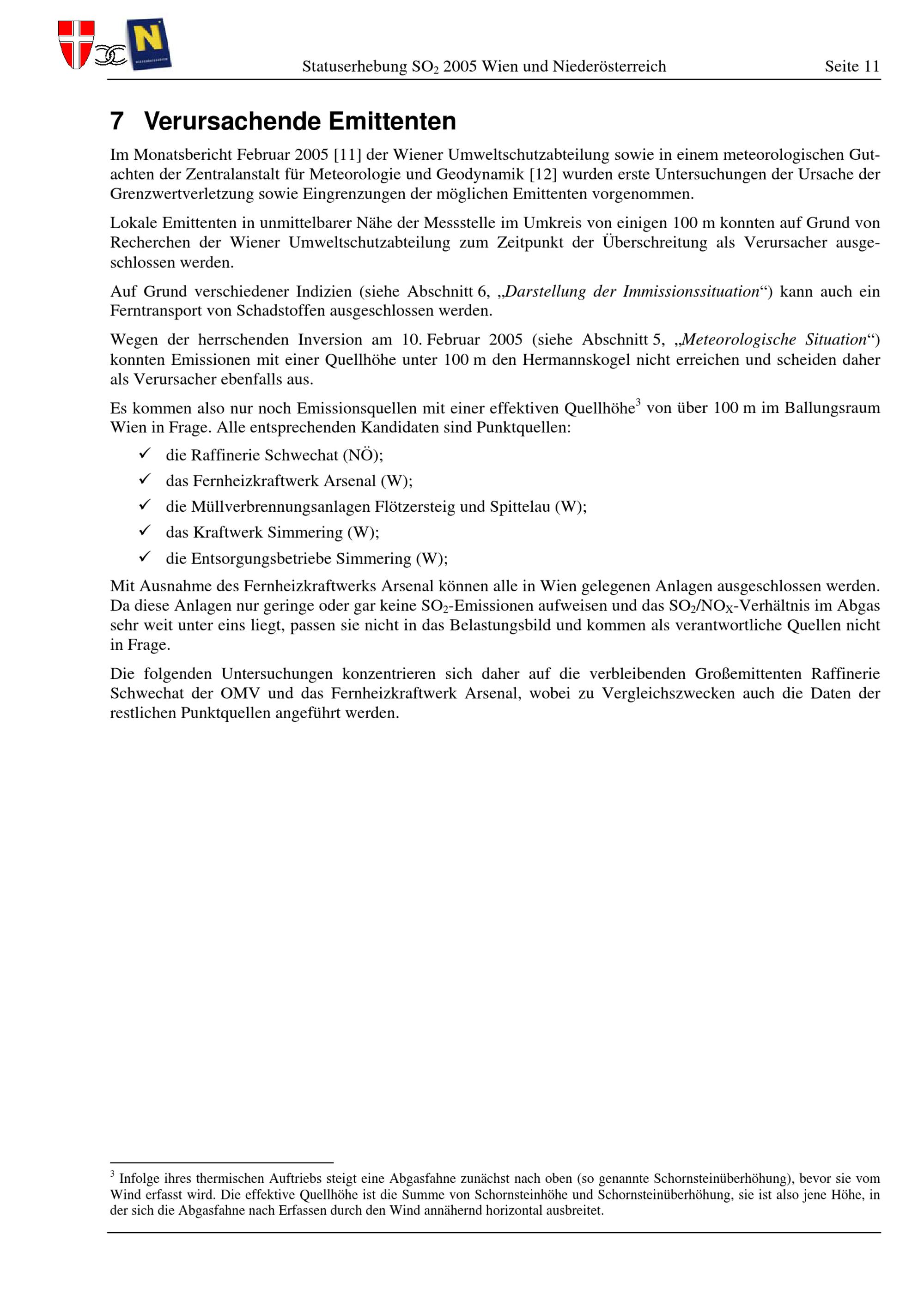 Statuserhebung SO2 2005 : gemäß Immissionsschutzgesetz - Luft : Überschreitung des zulässigen SO2-Halbstundenmittelwertes an der Wiener Messstelle Hermannskogel / durchgeführt von Wien und Niederösterreich ; für den Inhalt verantwortlich: Roman Augustyn [und 5 weitere]
