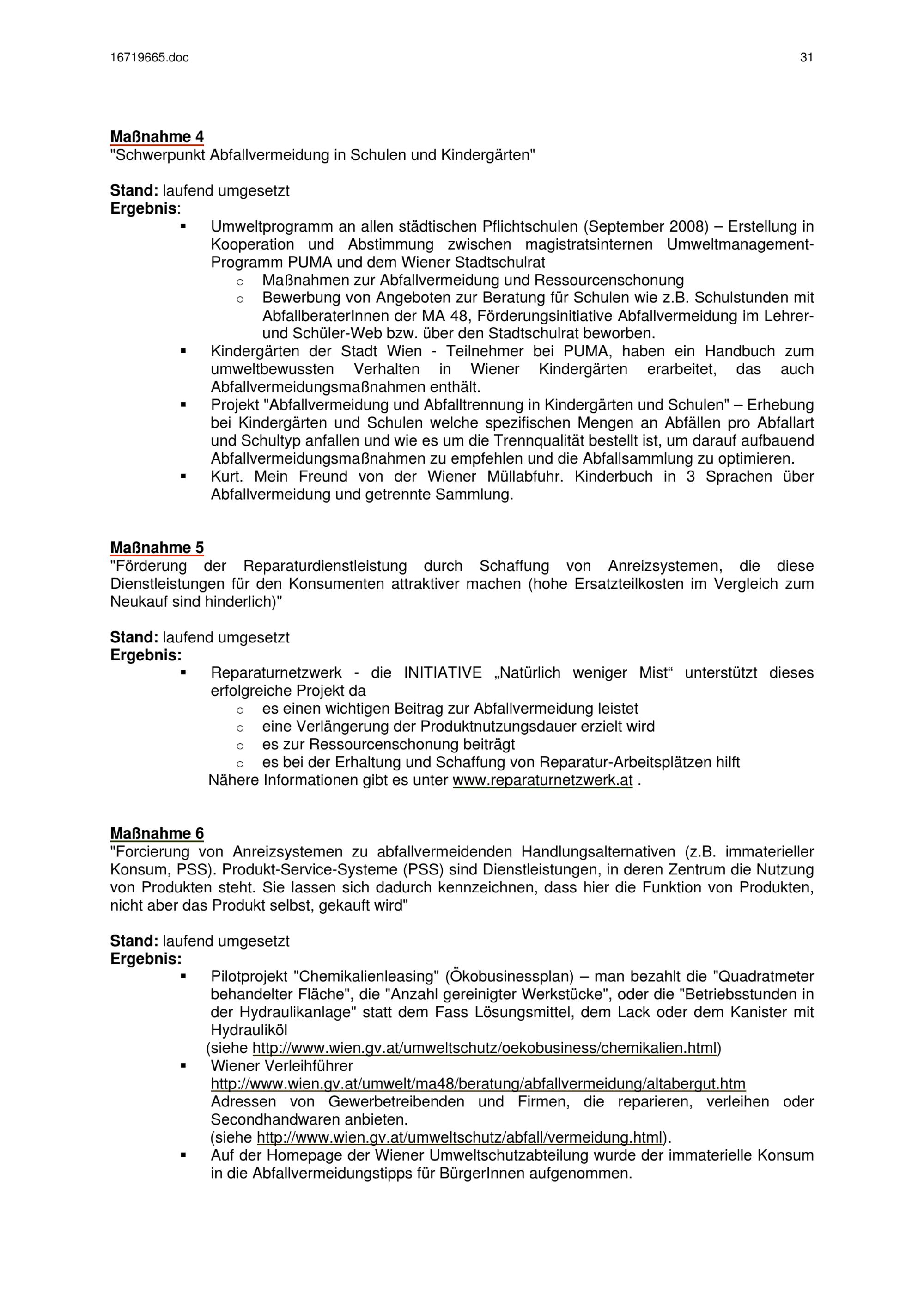 1. Monitoringbericht zum Wiener Abfallwirtschaftskonzept 2007 / Die 48er, Stadt Wien