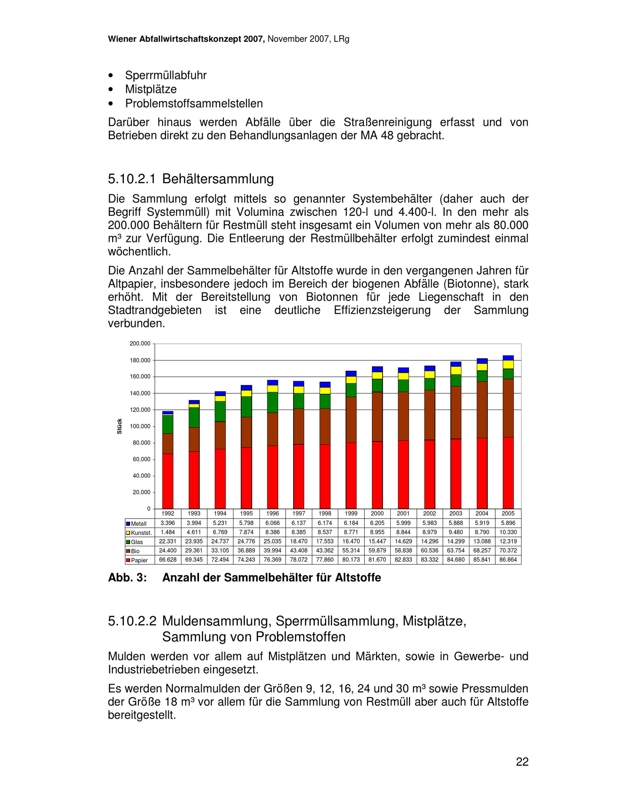 Wiener Abfallwirtschaftskonzept 2007 : im Rahmen der strategischen Umweltprüfung 2006/07 / Magistratsabteilung 48 - Abfallwirtschaft Straßenreinigung und Fuhrpark ; Autorinnen: Martina Ableidinger, Kerstin Arbter, Walter Hauer [und 3 weitere]